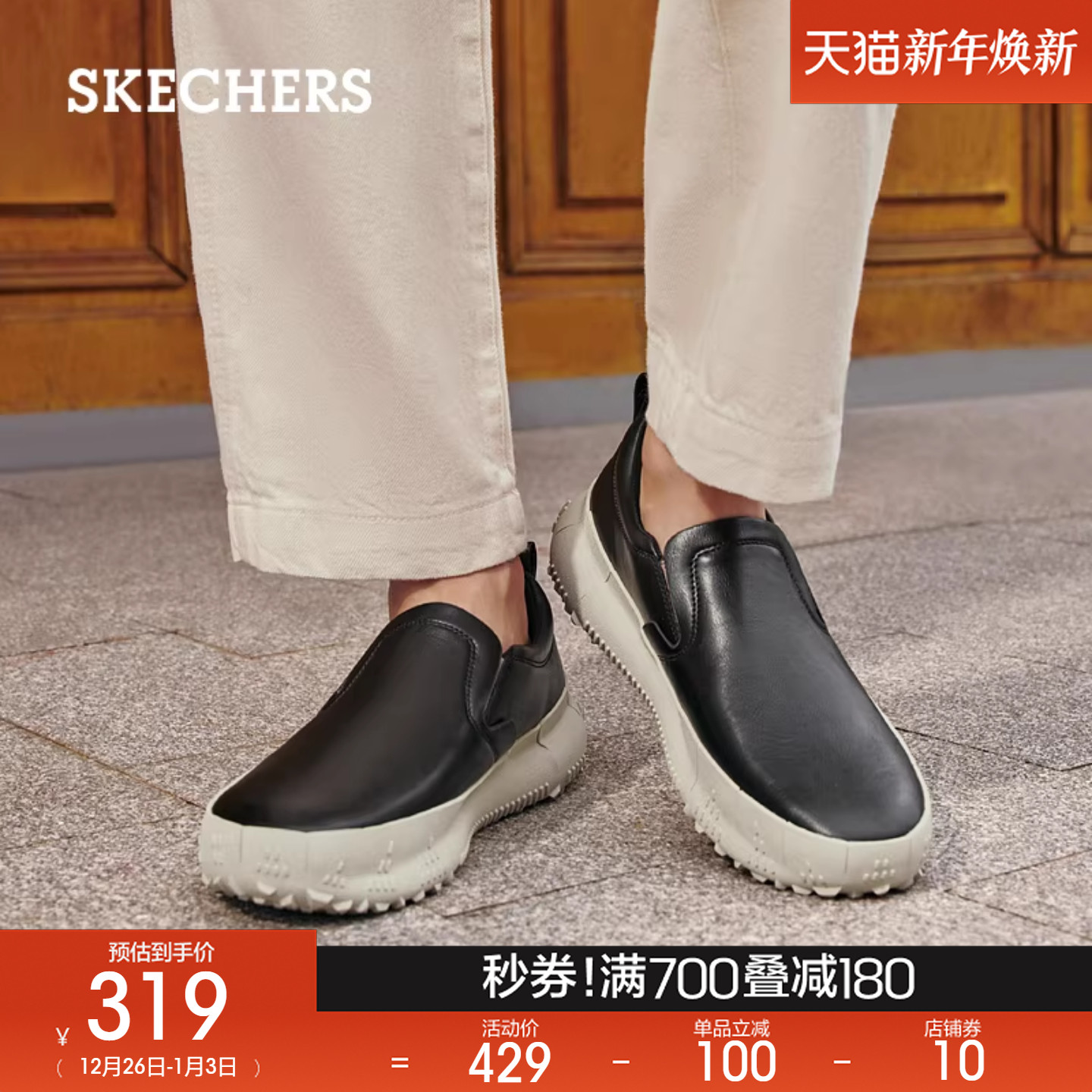 斯凯奇秋冬新款男鞋舒适一脚蹬休闲商务皮鞋厚底百搭通勤运动板鞋