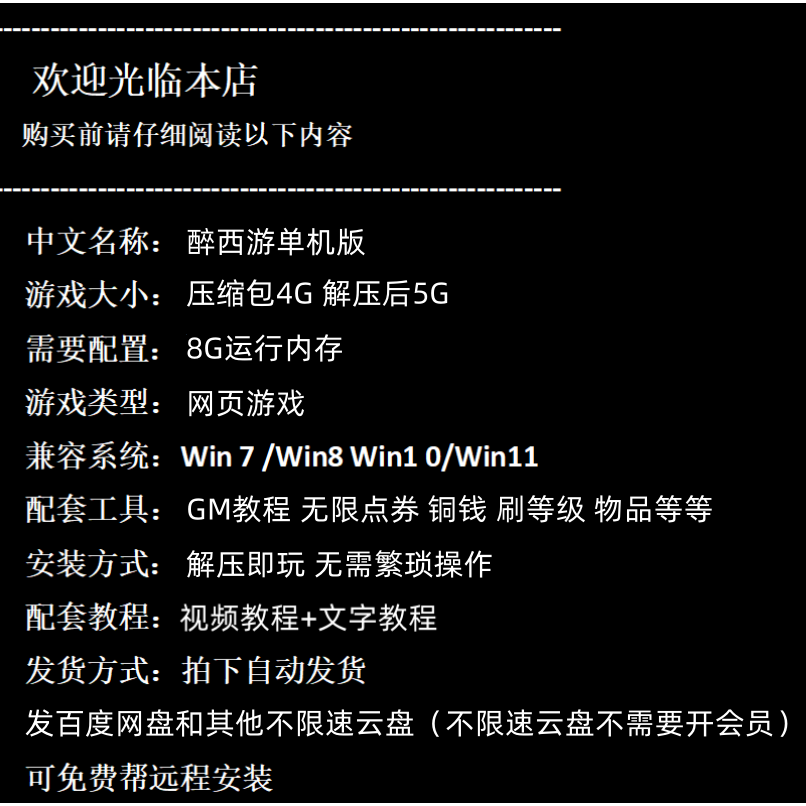 醉西游单机版 网页游戏电脑PC 解压即玩 赠GM 无限点券 铜钱