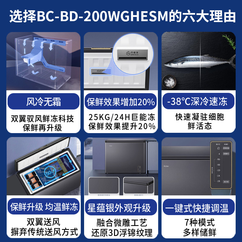海尔风冷无霜冰柜家用小型100/200/300L超低温冷柜冷冻冷藏大容量