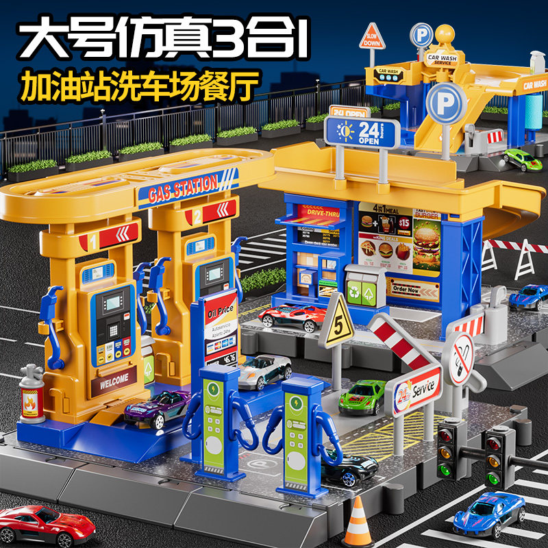 儿童洗车场加油站大号轨道玩具车仿真加油机模型男女孩3岁6过家家