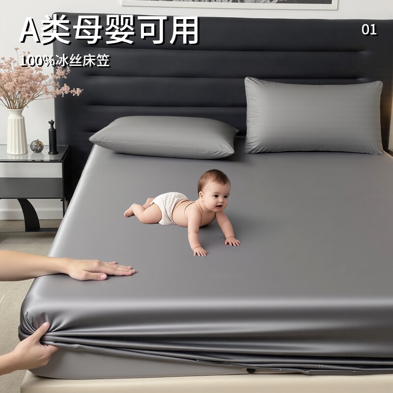 床笠2025全包裹冰丝仿天丝A类母婴级新款加高床单床垫全包围纯色