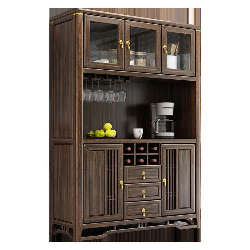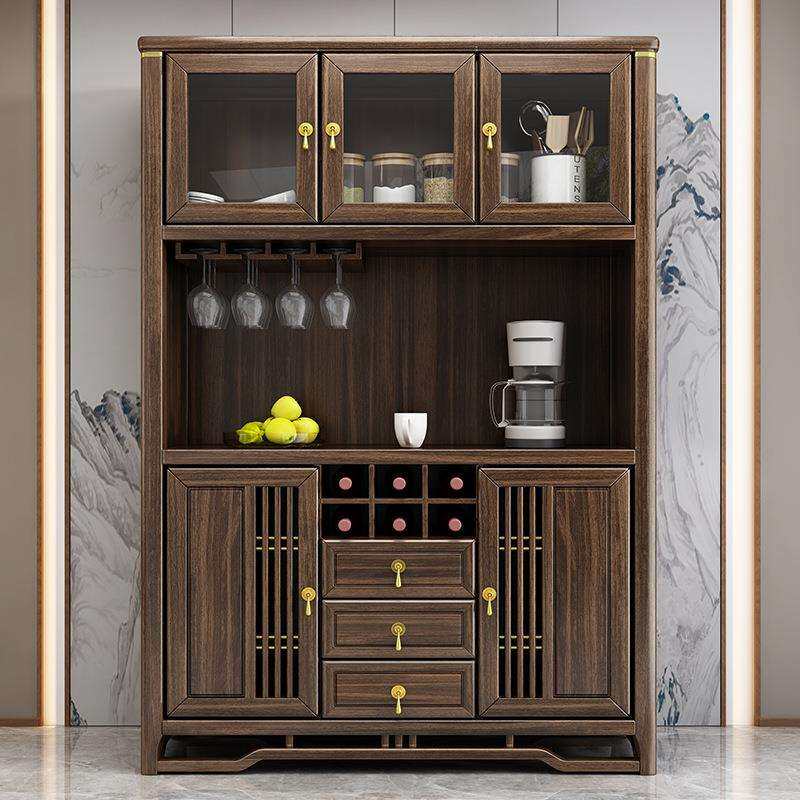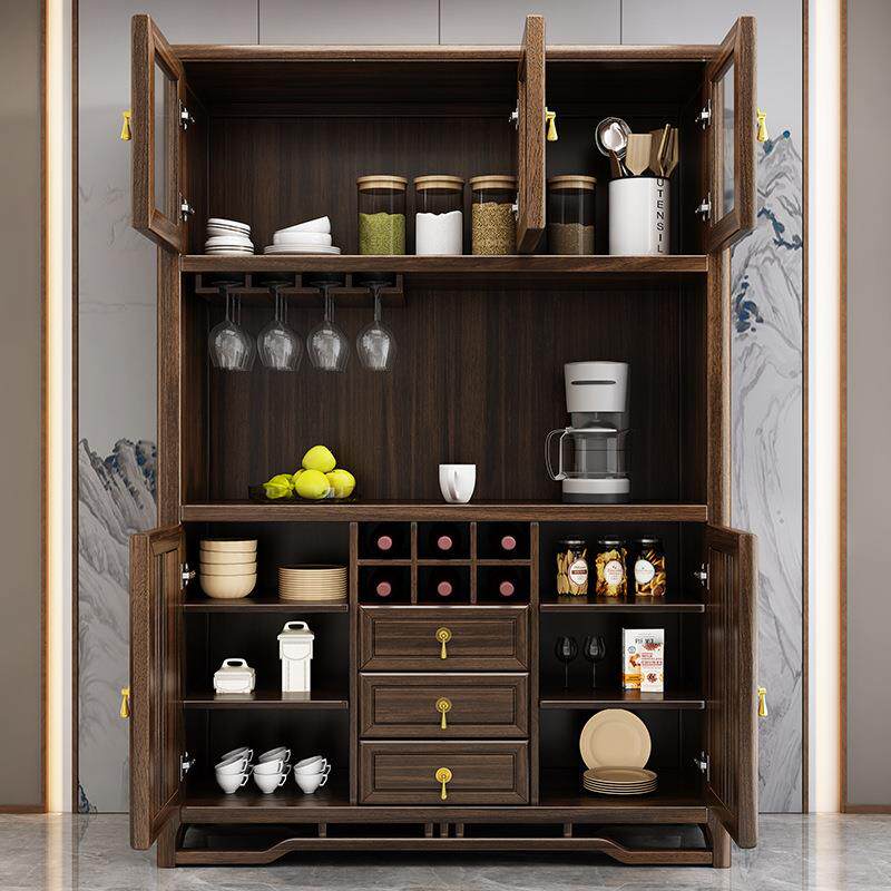 乌金木新中式实木餐边柜靠墙一体置物柜客厅酒柜储物柜家用餐厅柜