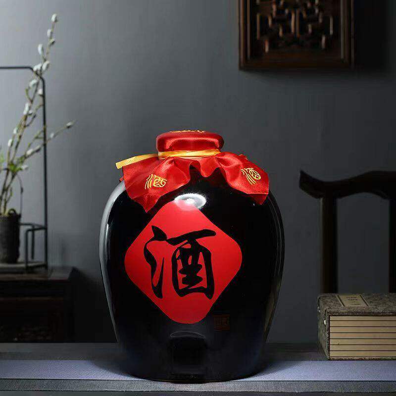 复古黑酒坛陶瓷酒坛5斤10斤20斤30斤50斤密封酒瓶酒缸酒壶景德镇