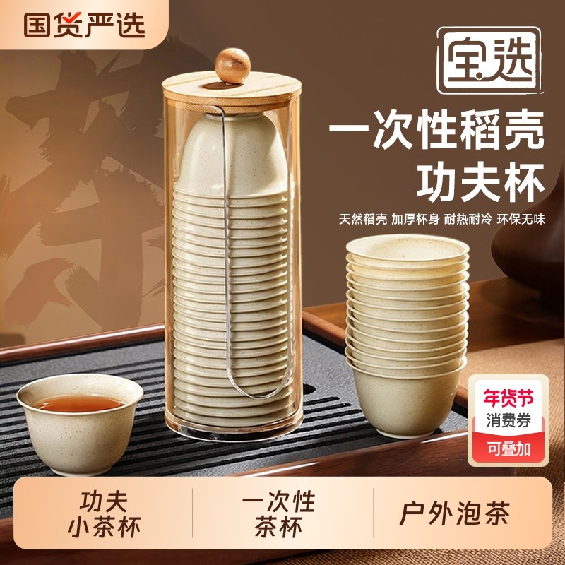 一次性茶杯稻壳户外泡茶待客便携水杯小号稻香杯子茶具功夫小茶杯