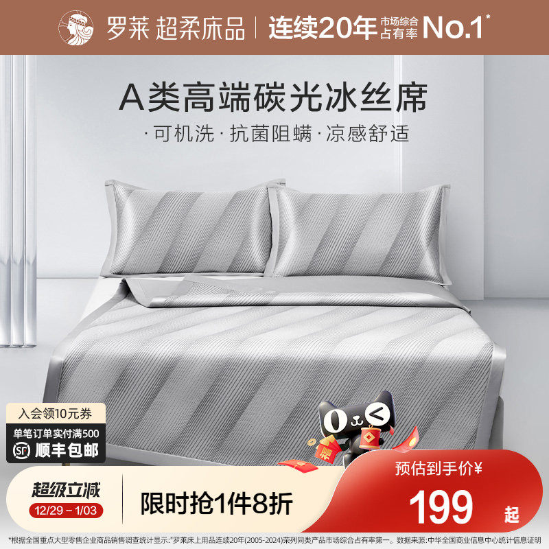 罗莱家纺可水洗冰丝席子夏季凉席A类抗菌学生宿舍双人凉感床笠席