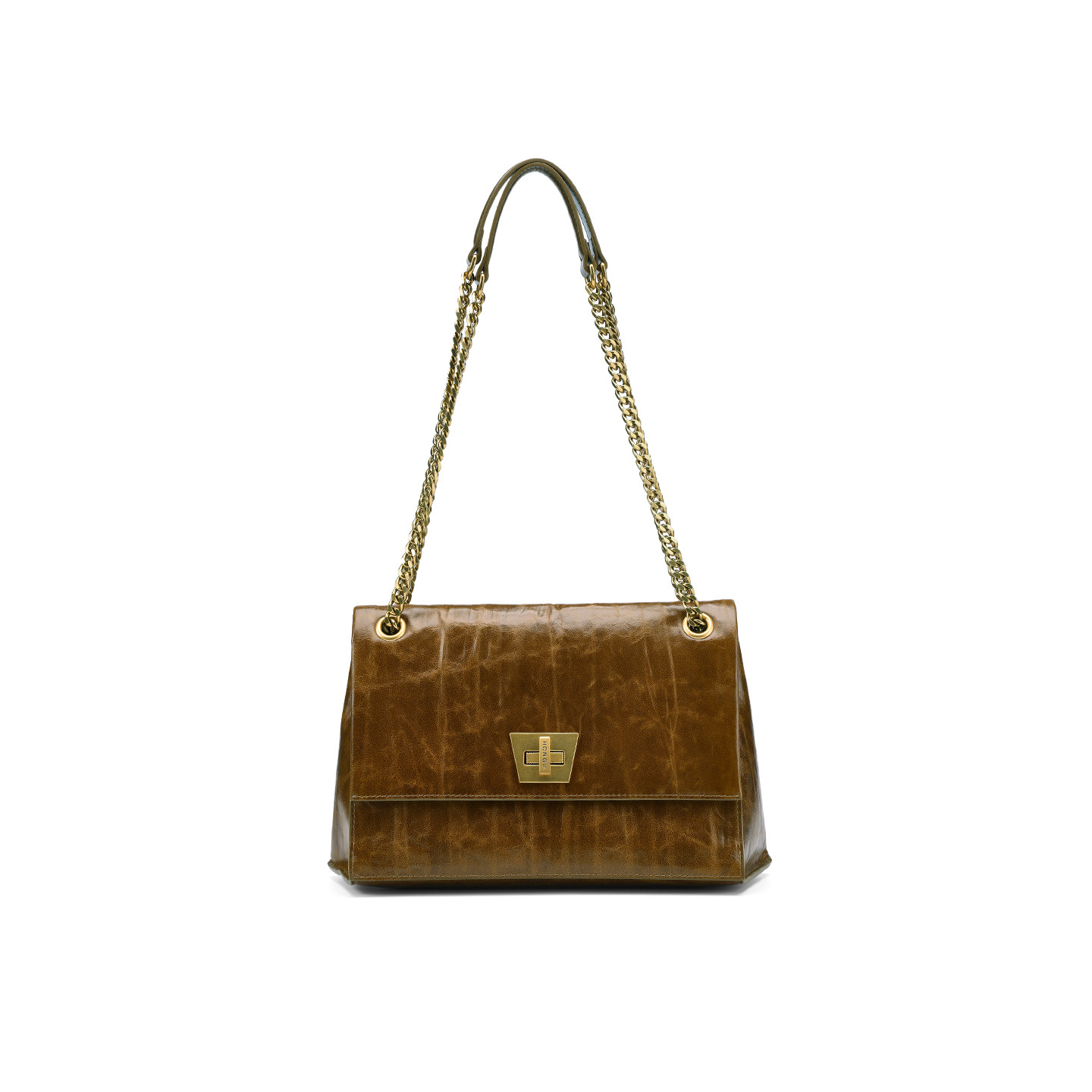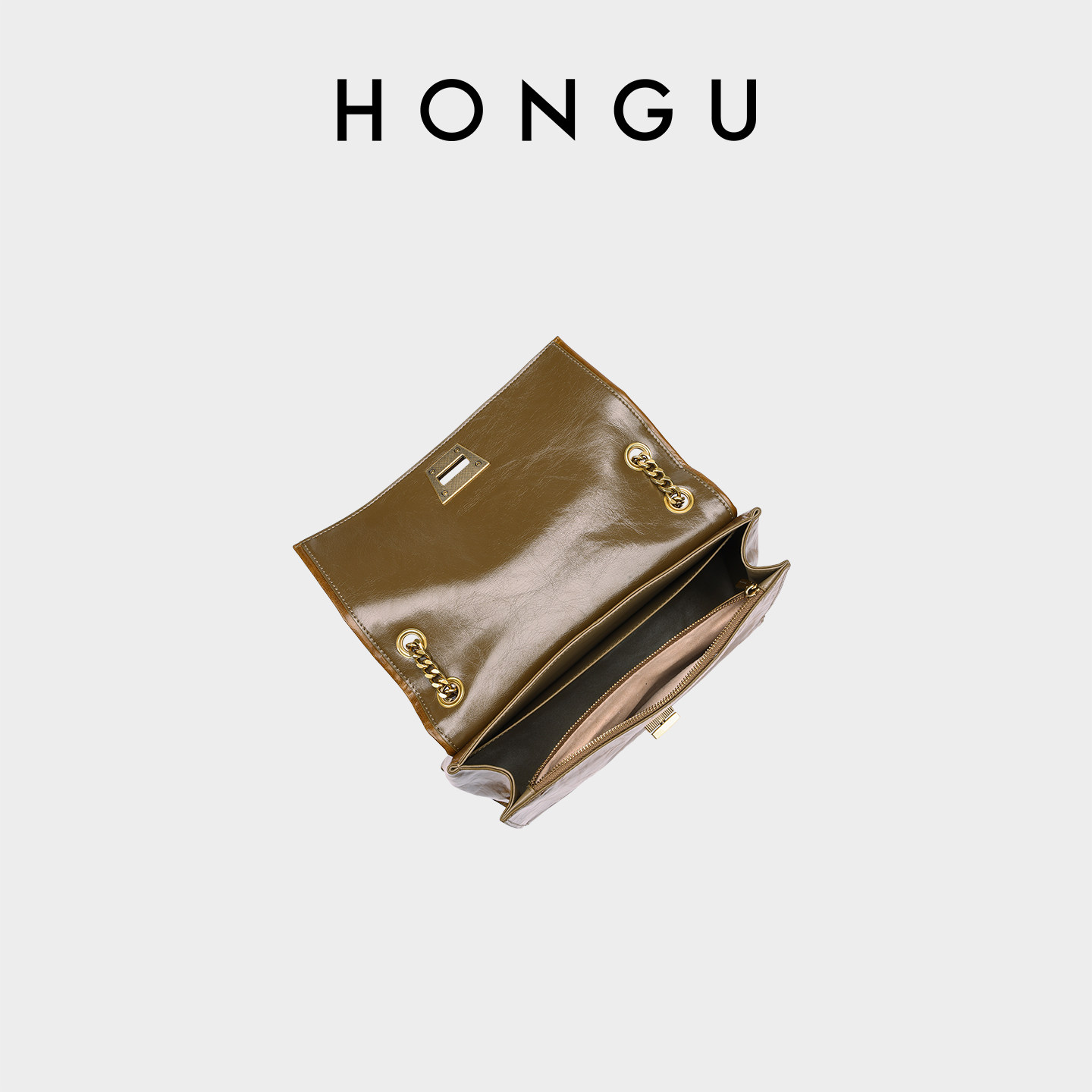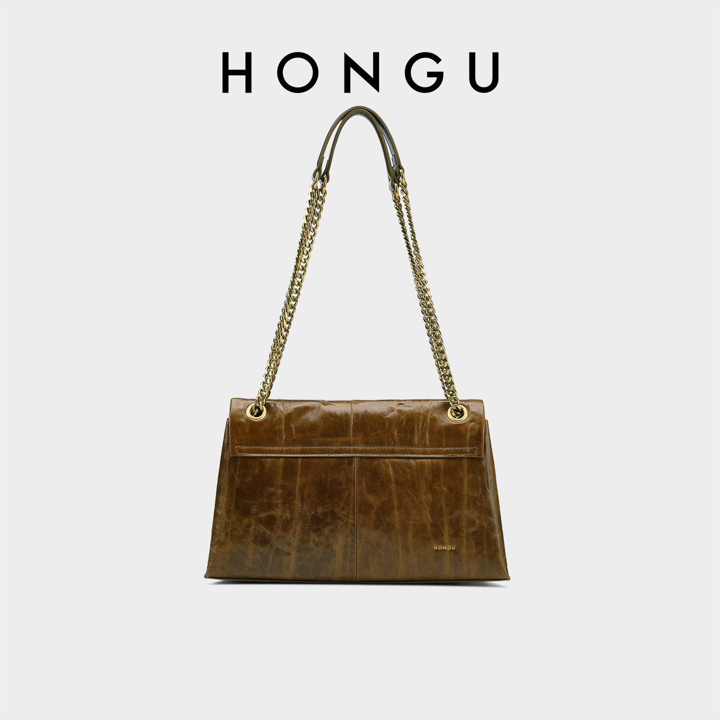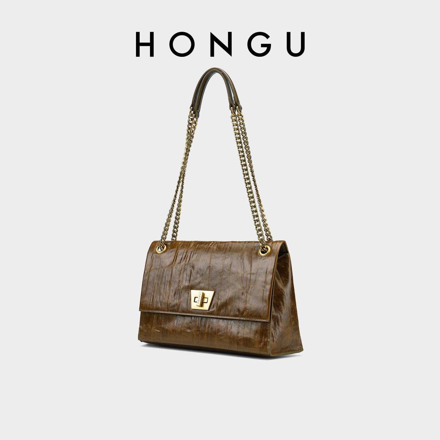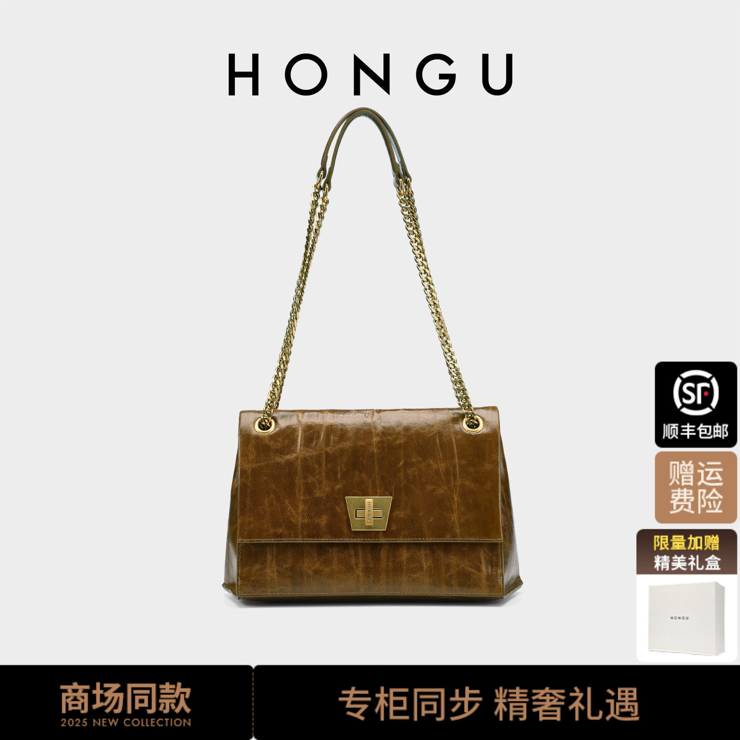 红谷包包2025新款油蜡真皮单肩腋下包复古高级感链条斜挎包女士包