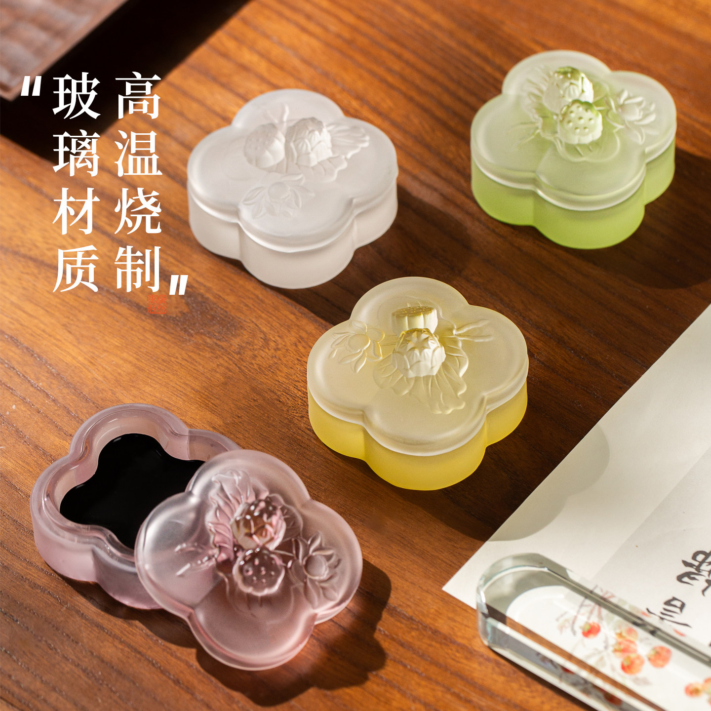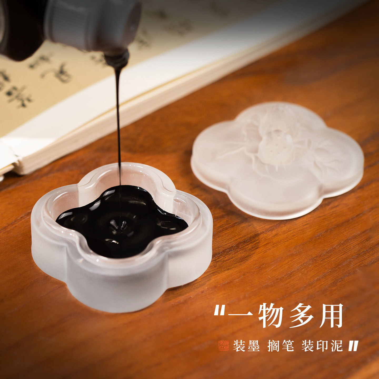 梅林笔庄墨碟火锅砚台带盖书法专用不干墨琉璃墨盒墨汁女生防干摆件笔搁高颜值精致莲花墨池文房四宝