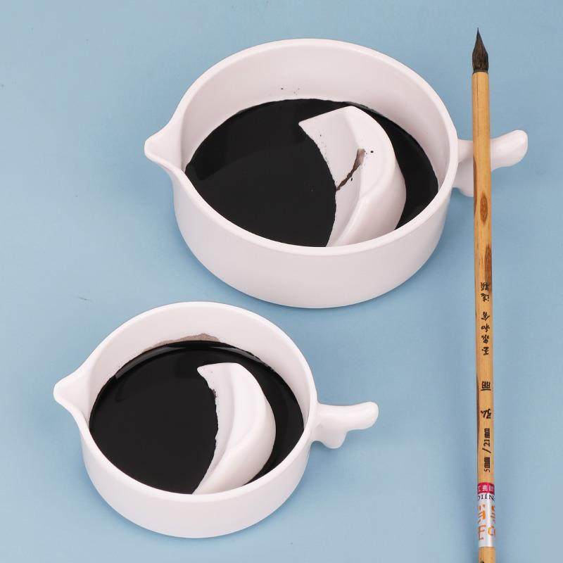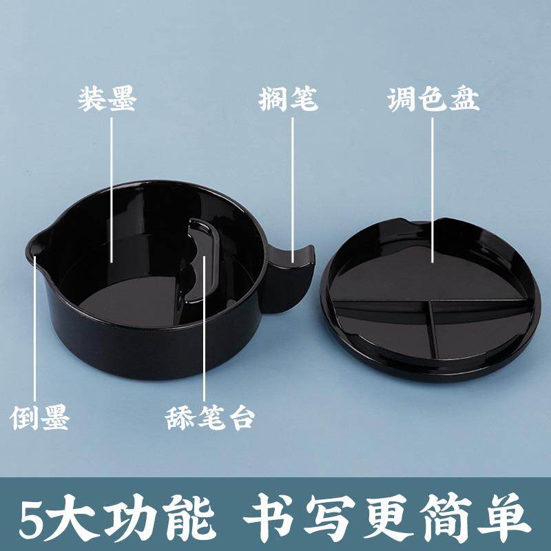 墨池多功能仿瓷防摔带盖墨盒书法墨汁墨盘墨碟笔搁墨蝶墨碗小砚台