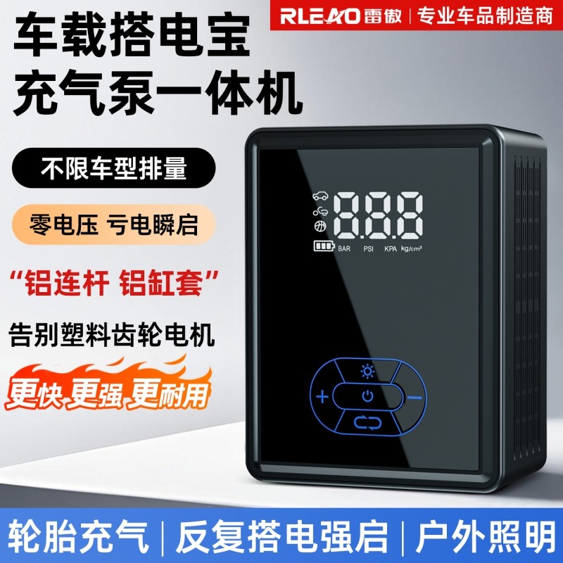 雷傲车载充气泵应急启动电源12v电瓶搭电宝一体机多功能打火神器