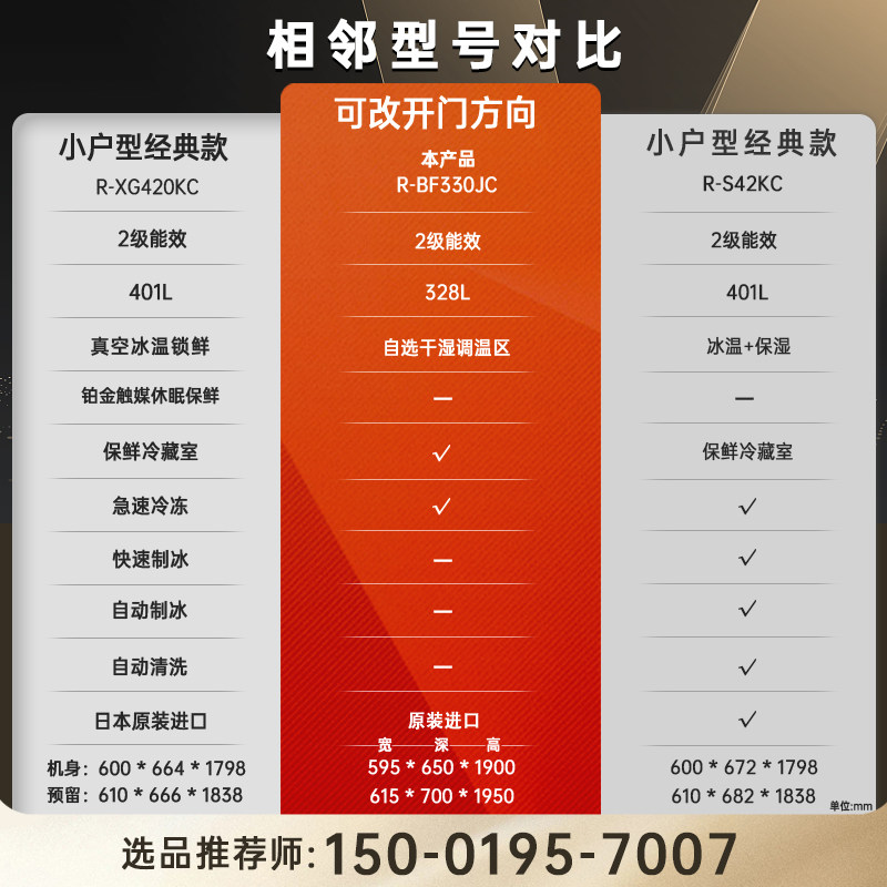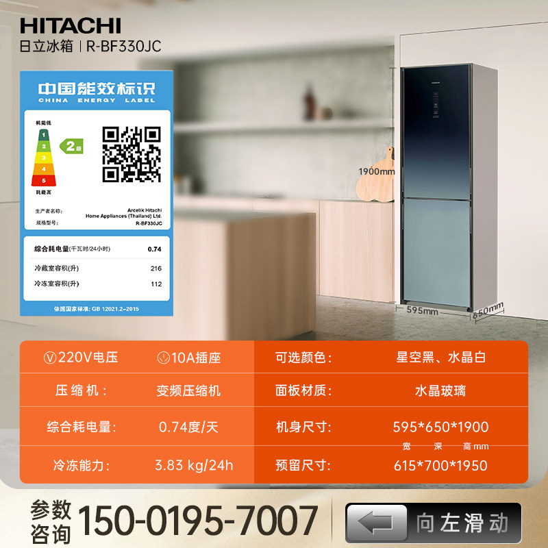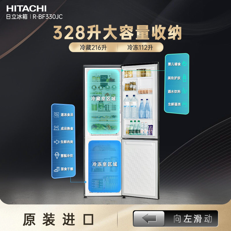 日立330原装进口小户型大容量双开门自选干湿调温家用嵌入电冰箱