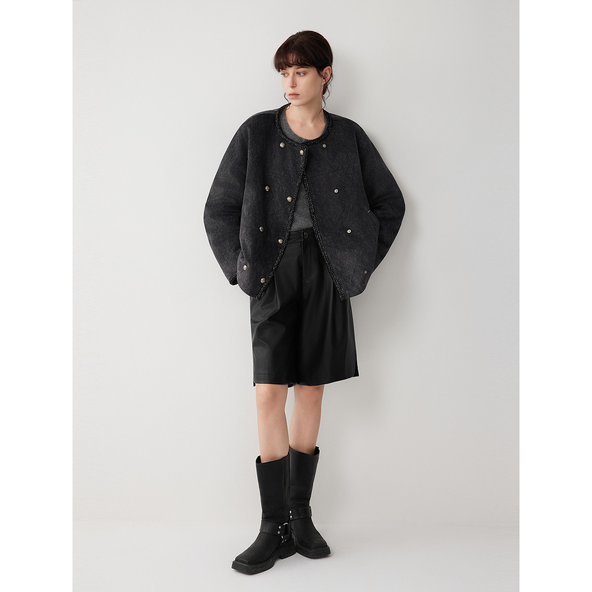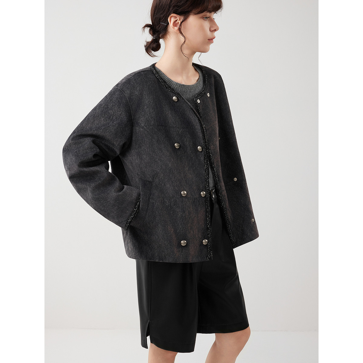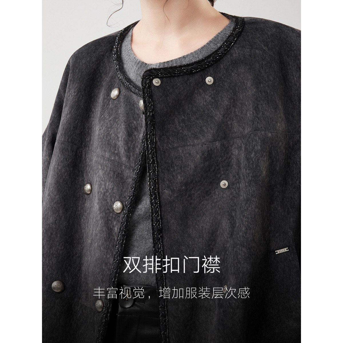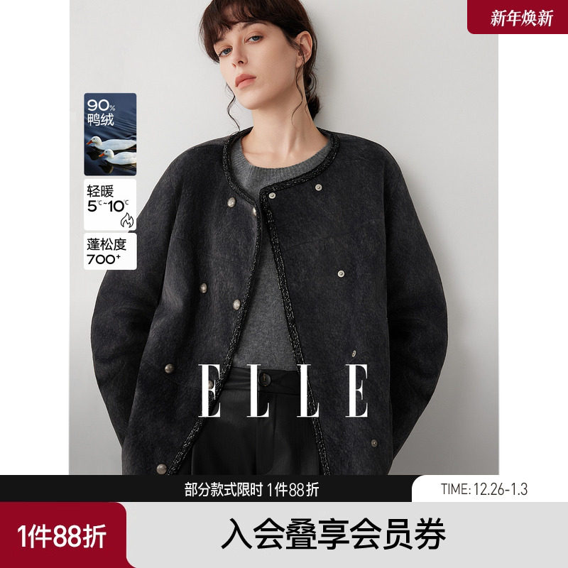 ELLE90白鸭绒灰色小香风羽绒服女2025冬季新款加绒加厚保暖短外套