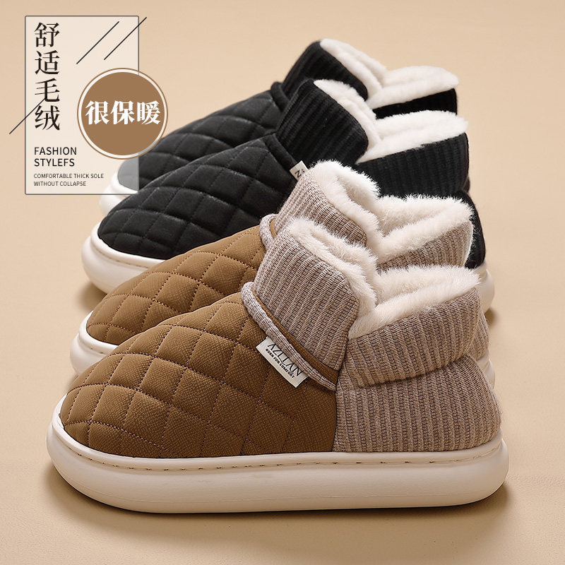 厚底棉拖鞋男女包跟秋冬2025新款防滑加绒保暖防水增高月子雪地靴