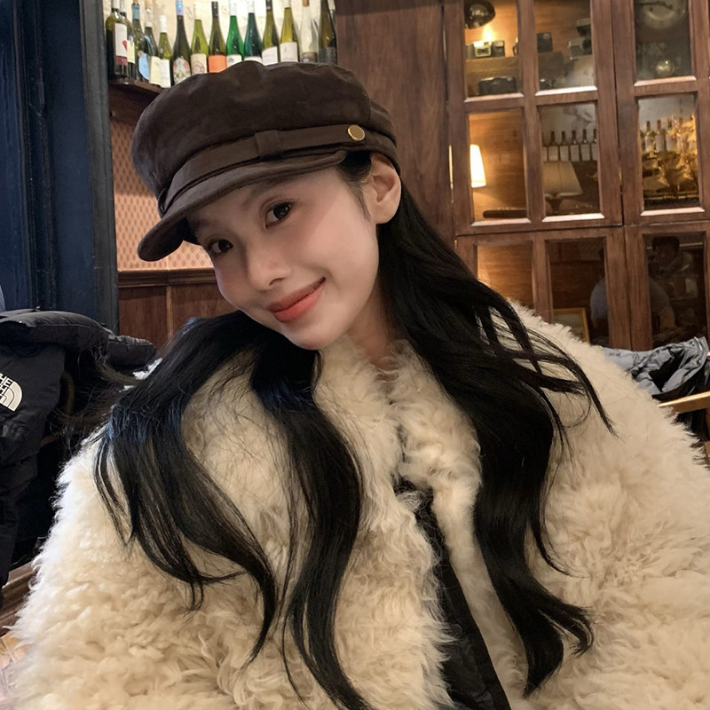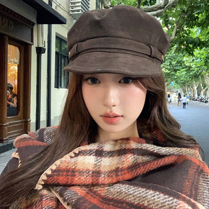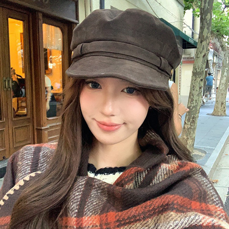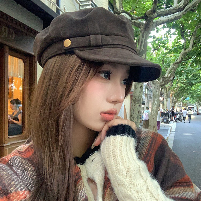 易梦玲同款报童帽美拉德画家帽25秋冬英伦风八角帽子咖色氛围黑色
