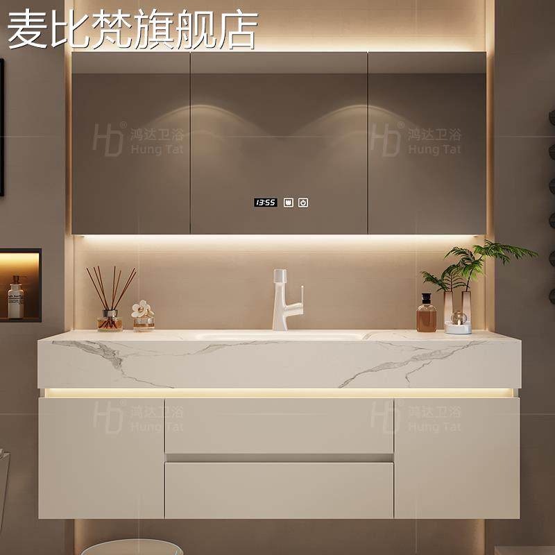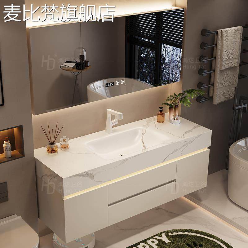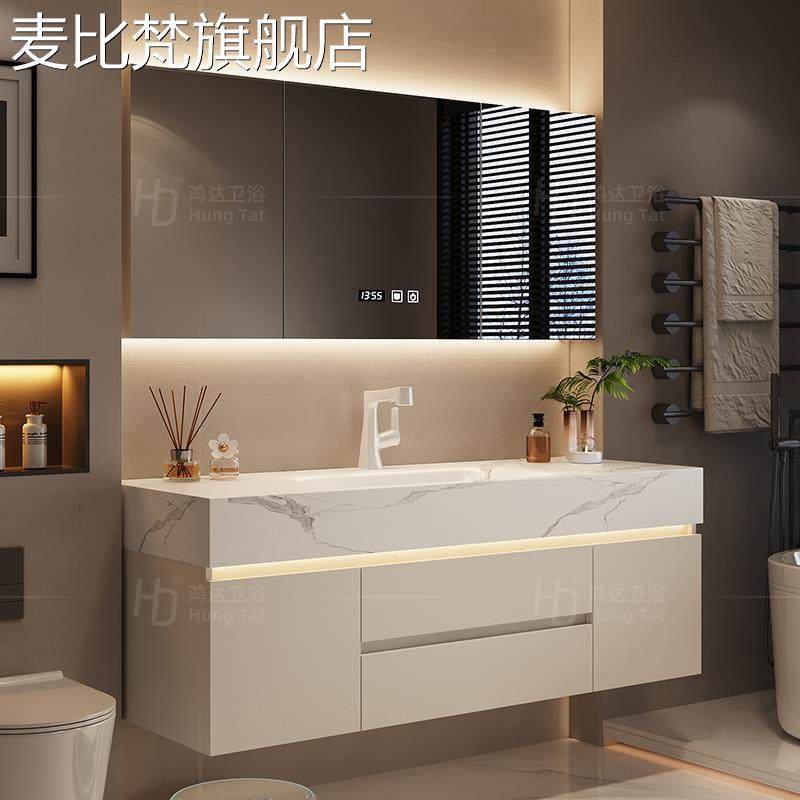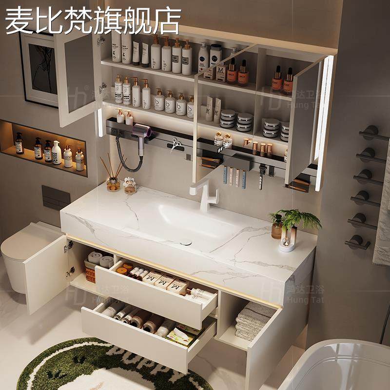 麦比梵卫生间洗手脸盆池岩板热弯一体盆浴室柜组合卫浴柜洗漱台2025新款摆件饰品床笠拉车
