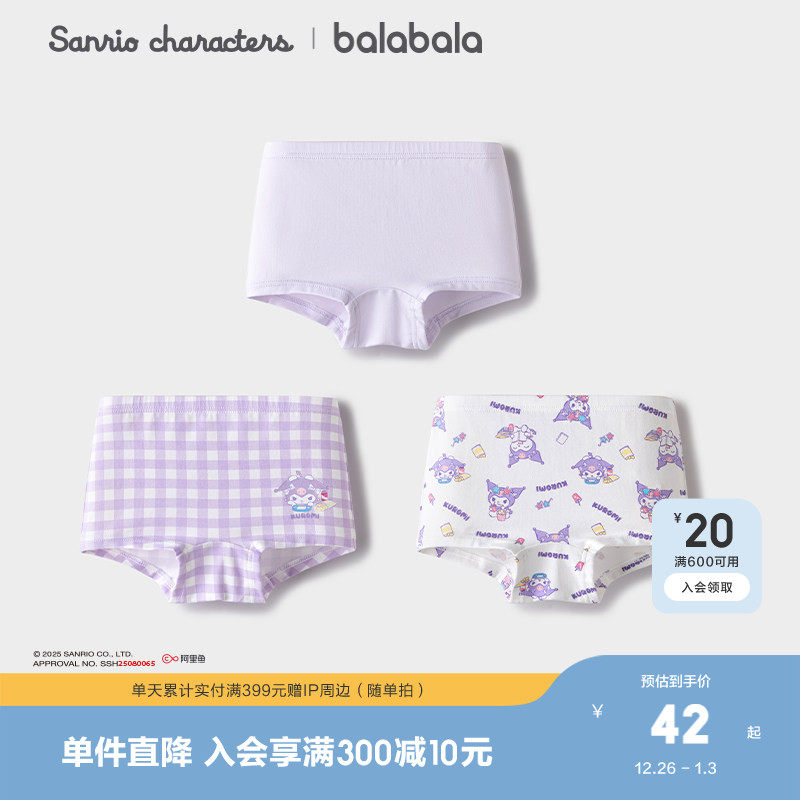 【三丽鸥IP】巴拉巴拉女童内裤宝宝平角儿童四角短裤不夹PP三条装