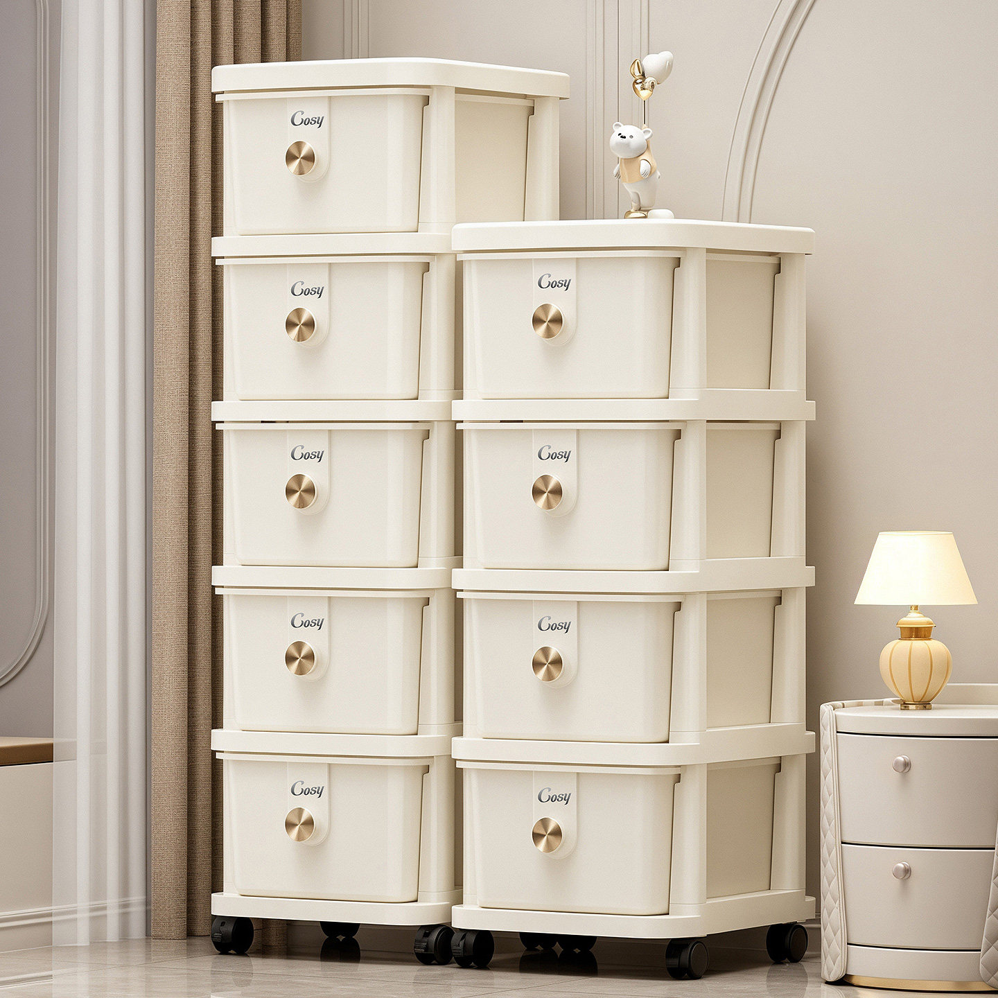 抽屉式收纳柜子卧室多层五斗柜塑料加厚卫生间夹缝柜可移动