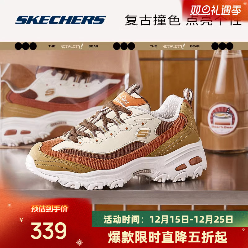 斯凯奇奶茶熊黑糖烤奶新款情侣老爹鞋子男女同款复古运动鞋时尚