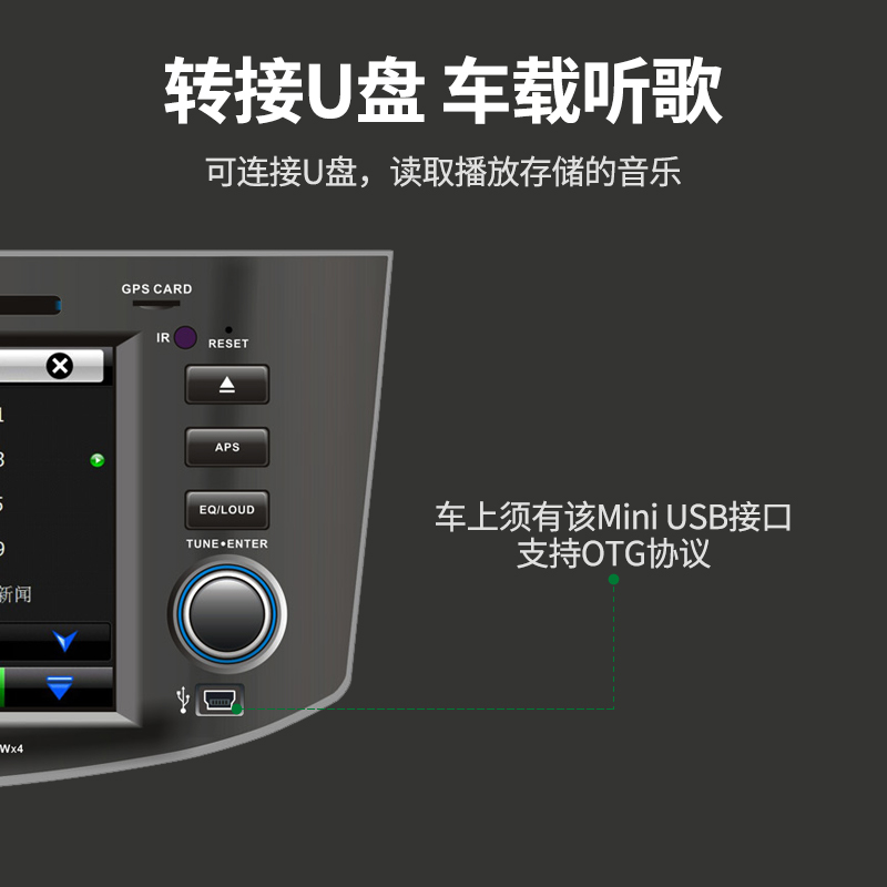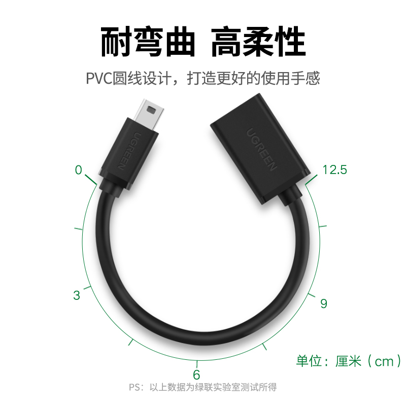 绿联miniusb转接头车载U盘转换接头otg数据线汽车音响听歌mp3/4优盘读卡器转换器导航通用t型接口usb连接线