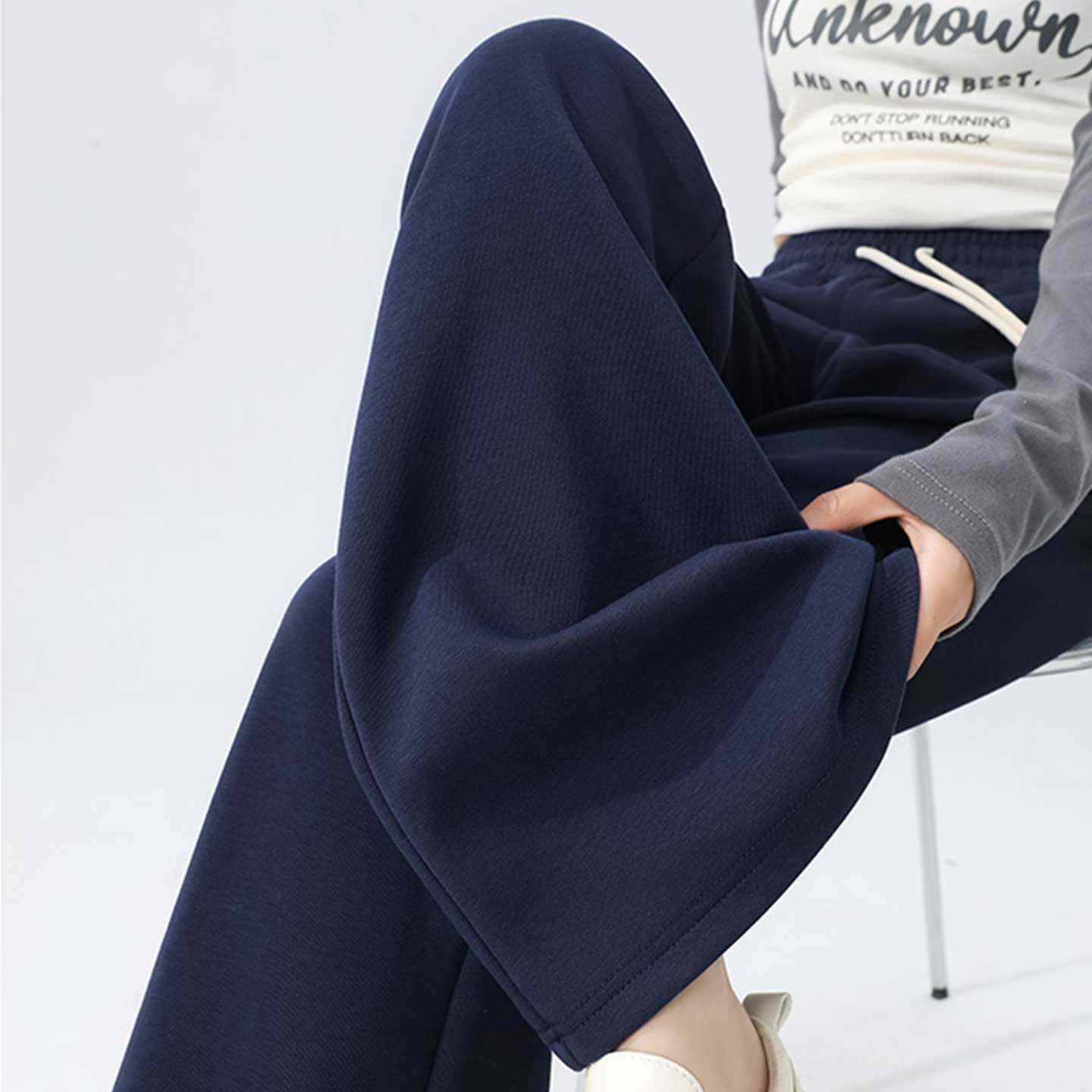 SIINSIIN加绒卫裤女2025新款阔腿运动裤休闲长裤冬季白色直筒裤子