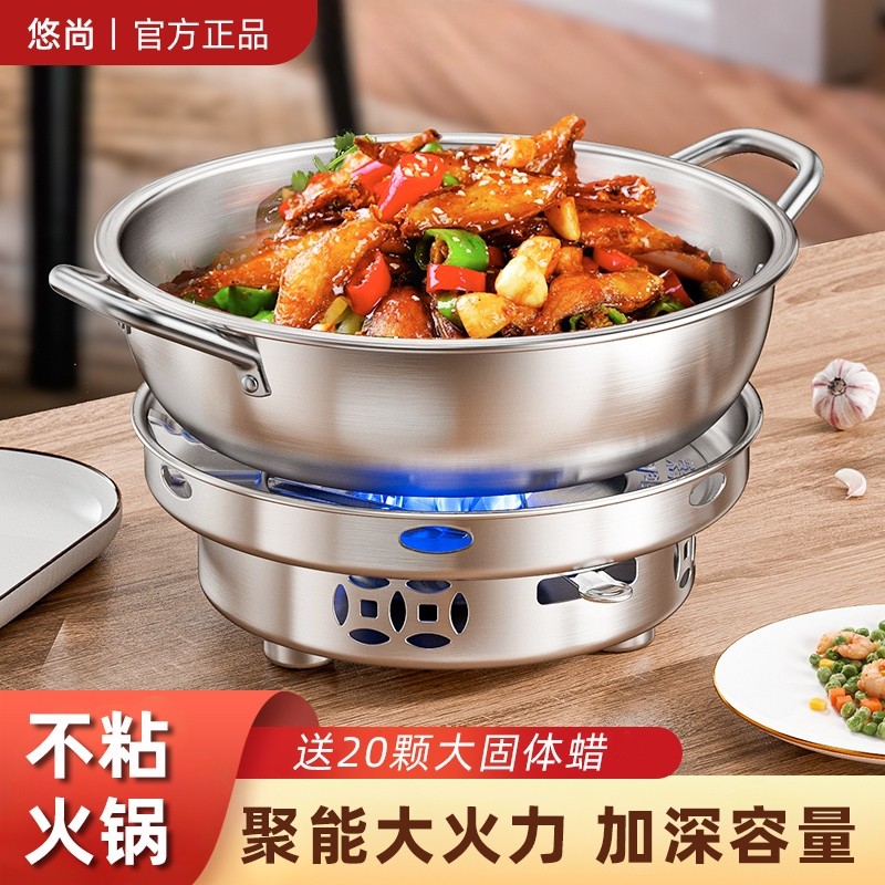 固体酒精炉子小火锅家用不锈钢干锅锅具炉灶专用户外便携锅仔商用