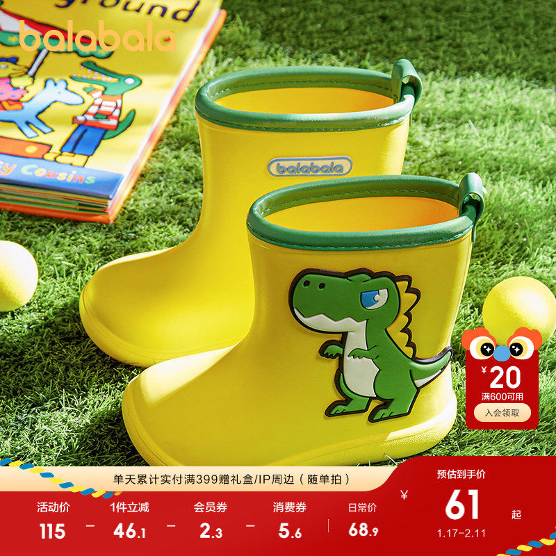 巴拉巴拉童鞋儿童短筒雨靴雨鞋夏男女童靴子卡通图案可爱软底舒适