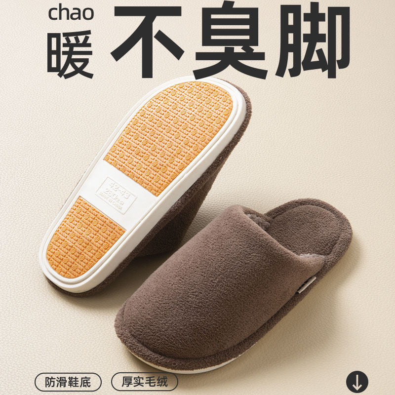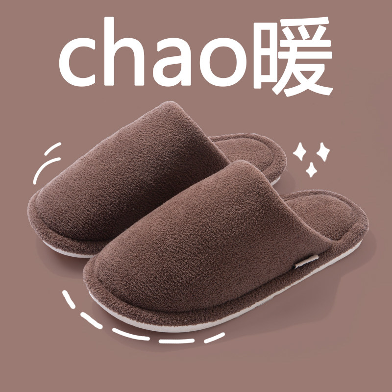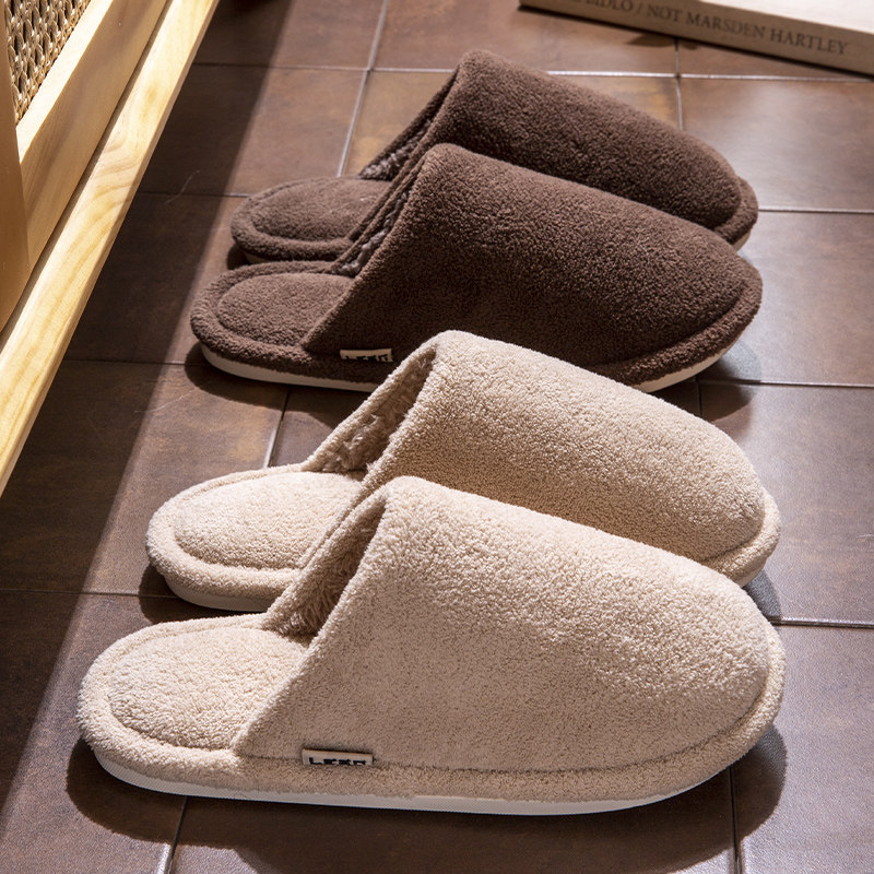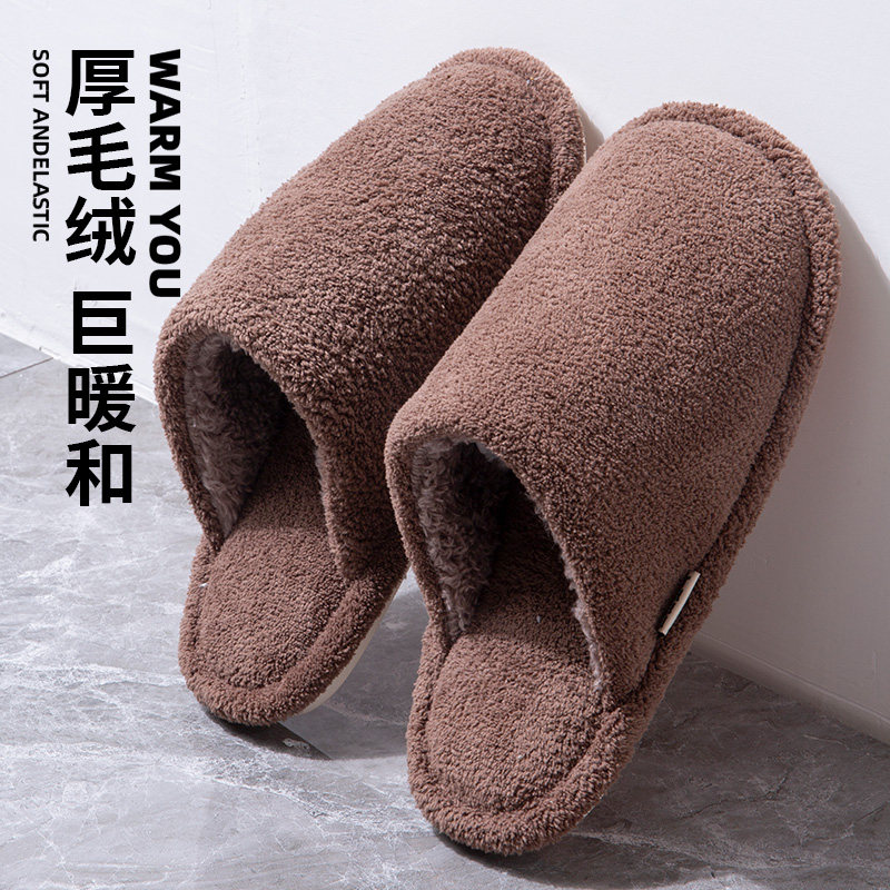 朴西棉拖鞋女士秋冬季厚底简约保暖室内居家用软底防滑情侣棉拖男