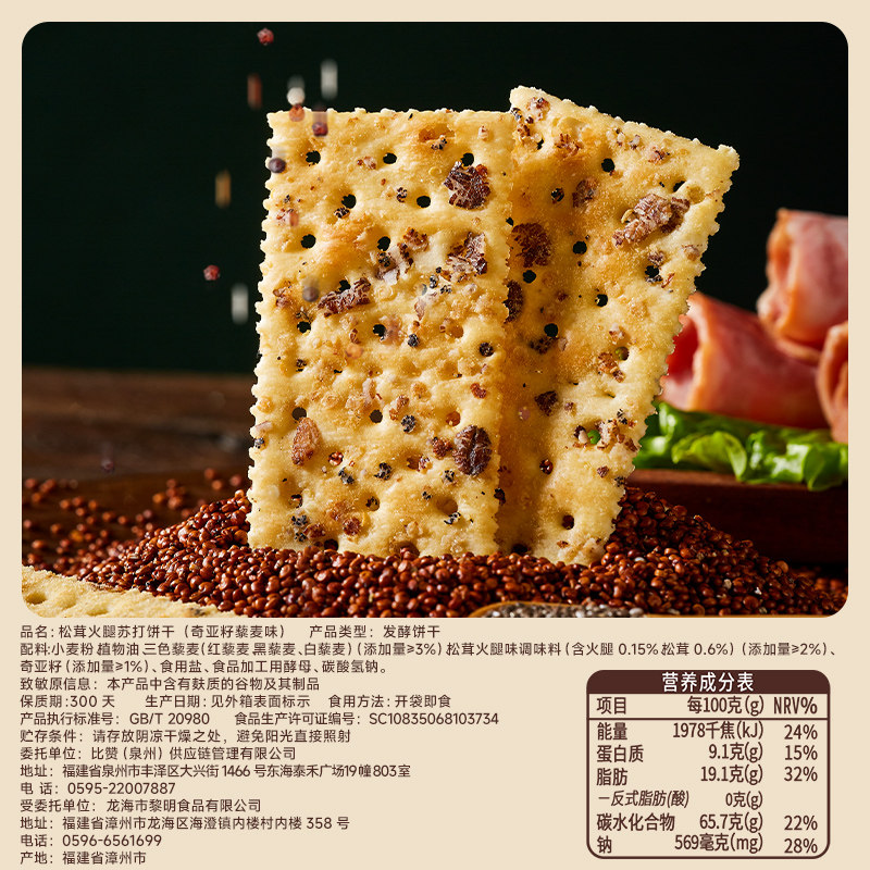 比比赞松茸火腿苏打饼干梳打零食小吃休闲食品奇亚籽藜麦健康酥脆