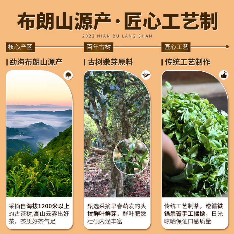 新益号布朗山普洱茶生茶散茶2023年云南古树茶散装生普茶叶礼盒装