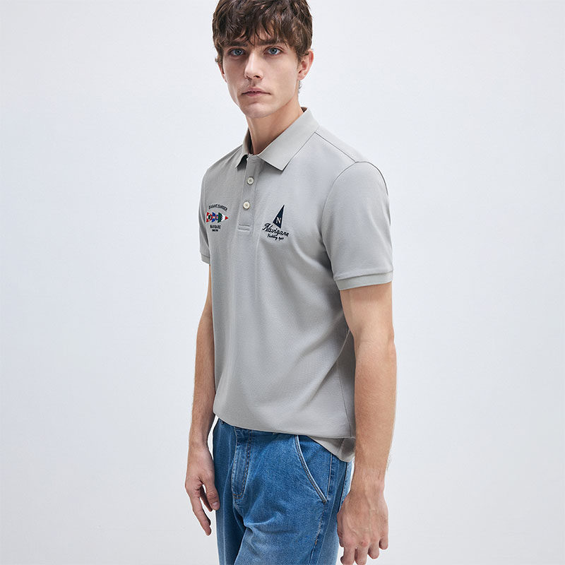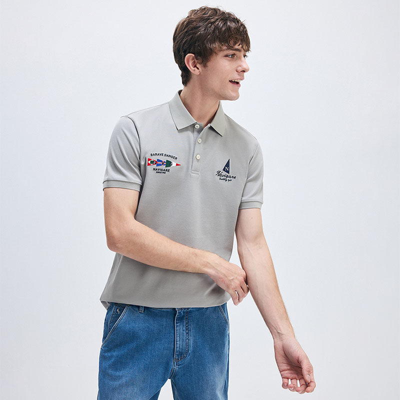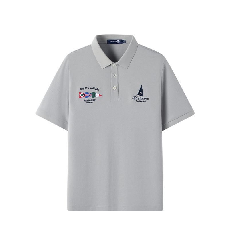 Navigare意大利小帆船夏季新款灰色POLO衫翻领男士休闲短袖T恤