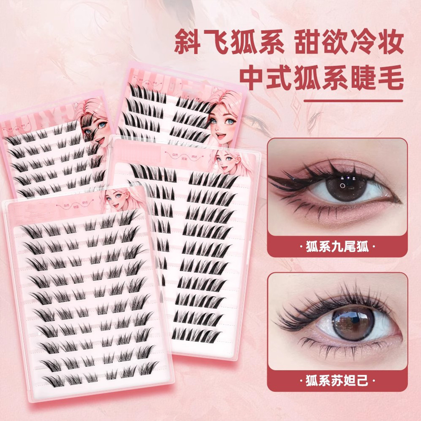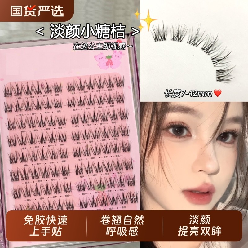 免胶自粘分段式淡颜伪素颜自然仿真假睫毛中式狐系小糖桔方便易携