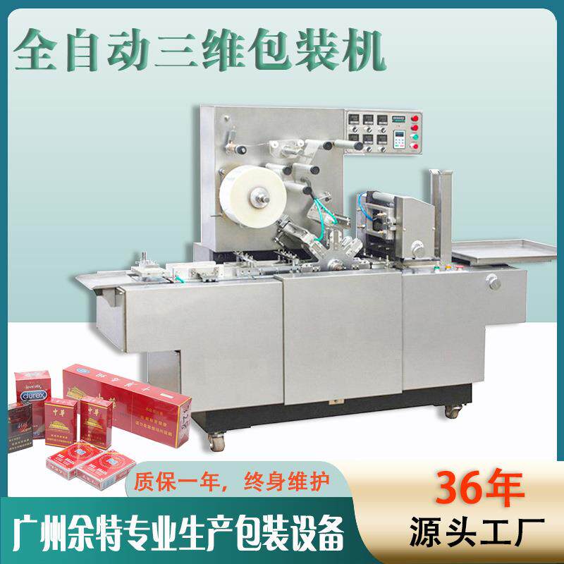 金自动旋转式三维全包装机 透明膜防伪 拉线烟包机余特护肤品盒包