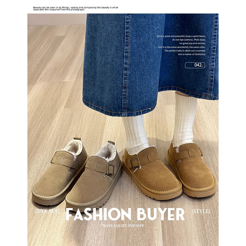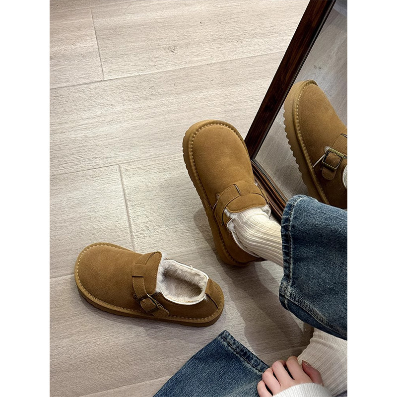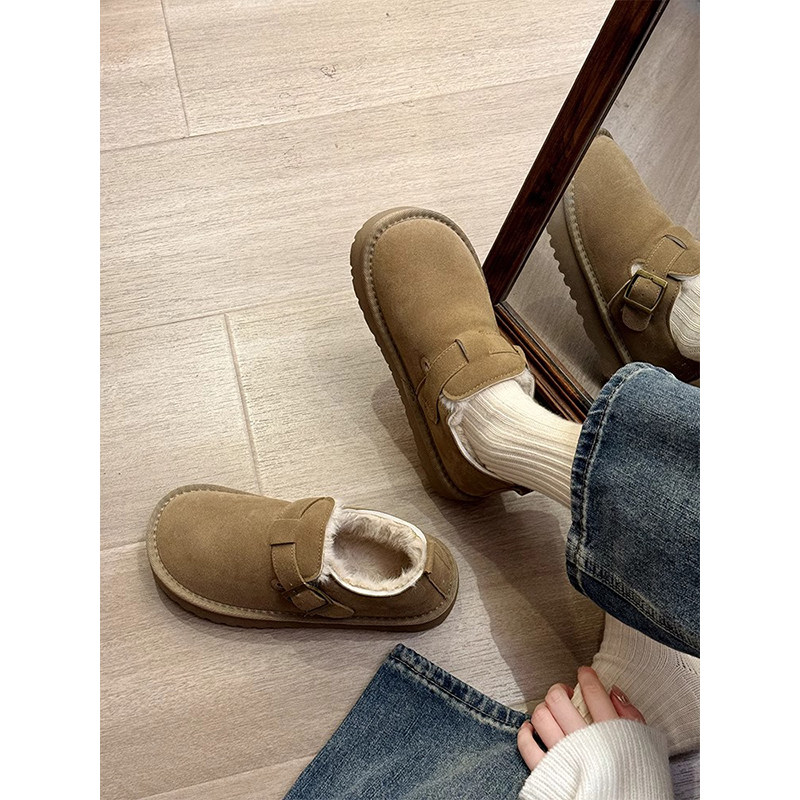 平底勃肯鞋女加绒保暖雪地靴女2025新款冬季乐福鞋豆豆鞋博肯棉鞋