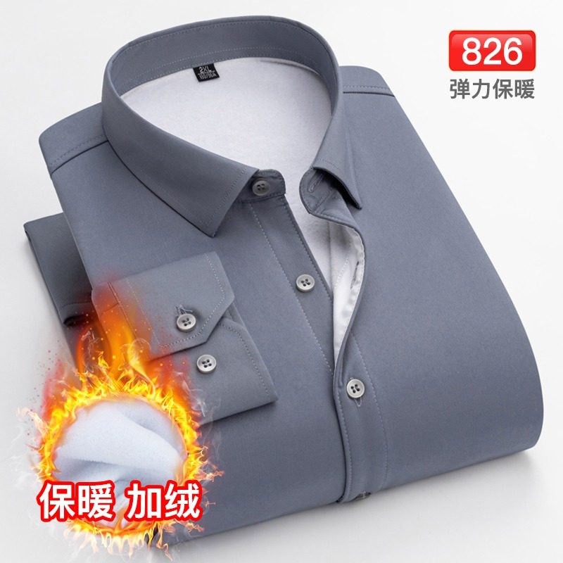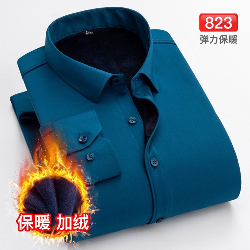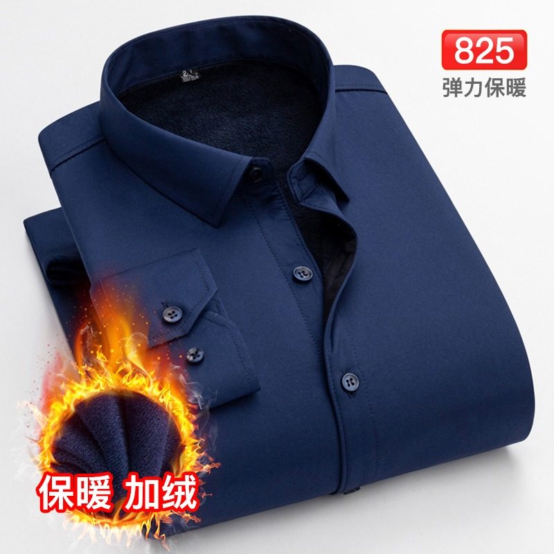 冬季加绒加厚免烫长袖衬衫高档保暖工装衬衣商务休闲大码衣服内搭
