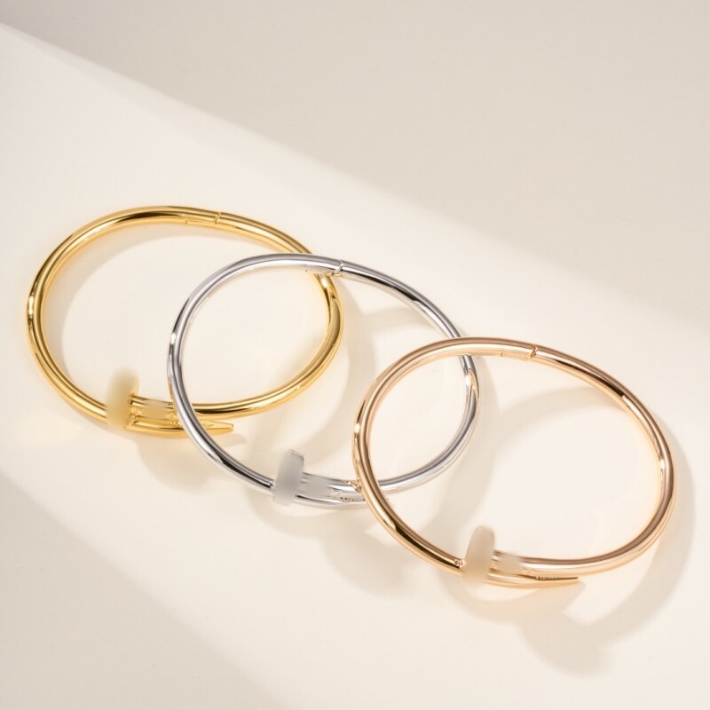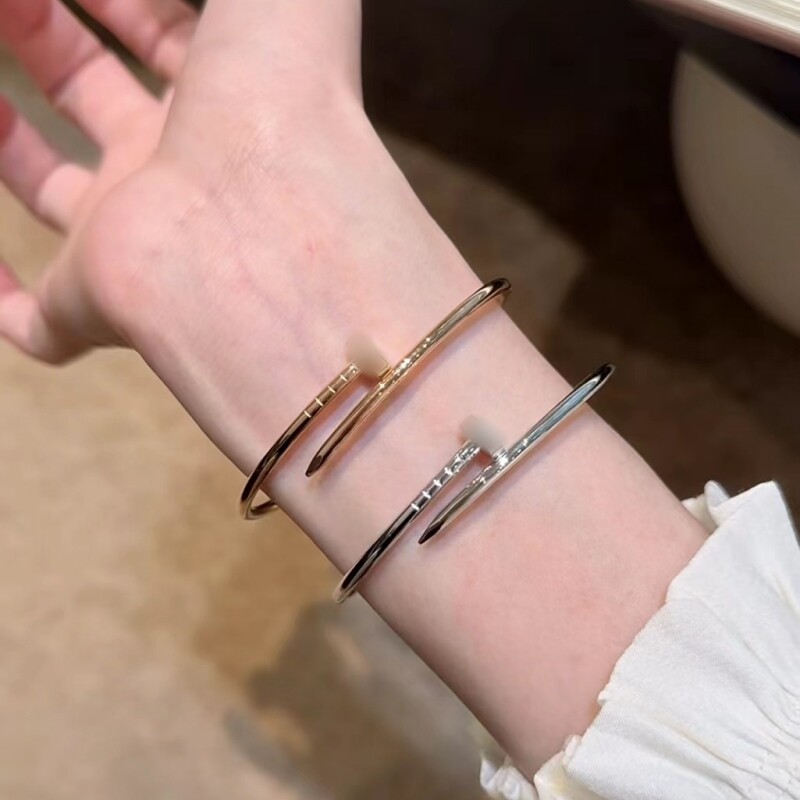 LOVE钉子手镯镀18K玫瑰金头尾钻情侣手环轻奢时尚V金光面经典设计