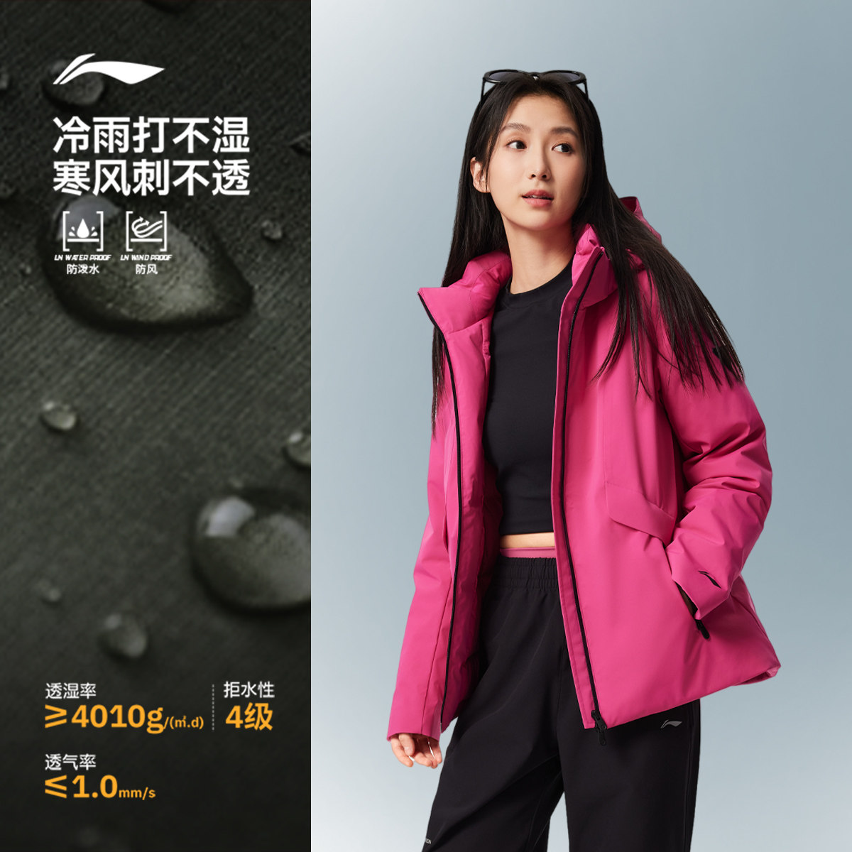 李宁火锅羽绒服丨女冬季官方新款保暖连帽鹅绒中长款户外运动外套