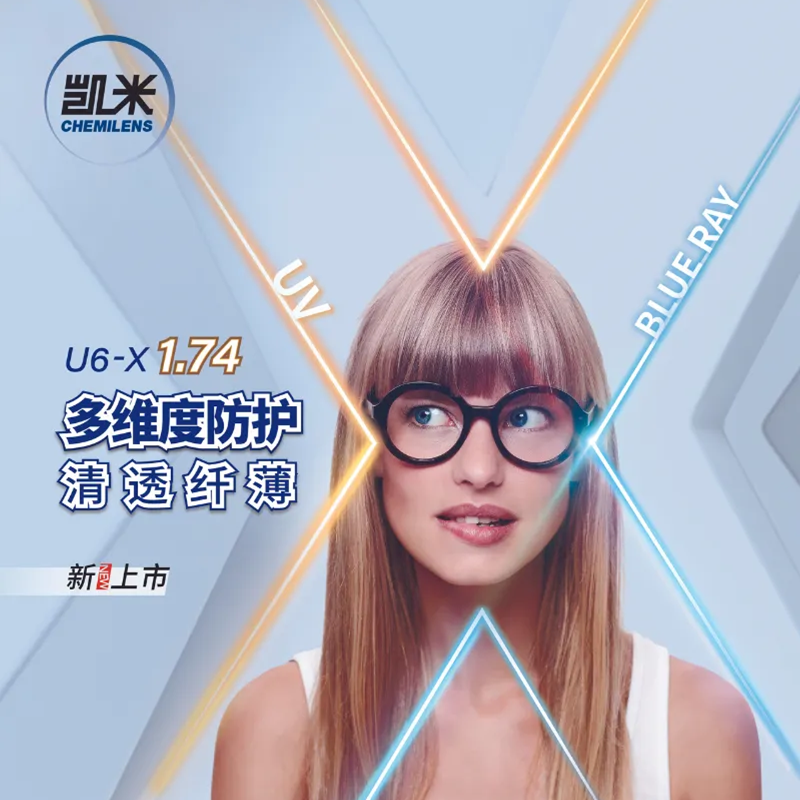 韩国凯米镜片u6-x浅底色防蓝光近视眼镜片高清非球面可配散光2片
