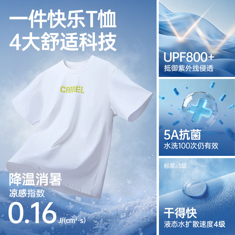 骆驼T恤男夏季2026新款凉感5A抗菌运动休闲短袖情侣防晒透气上衣
