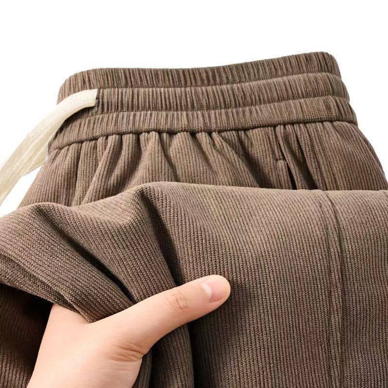 灯芯绒裤子男春秋潮牌垂感直筒宽松阔腿裤美式复古男裤休闲运动裤