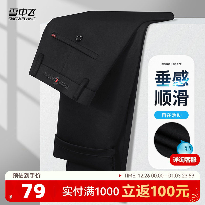 雪中飞25秋新款冰丝轻薄弹力男士休闲裤宽松字母皇冠款纽扣裤子W