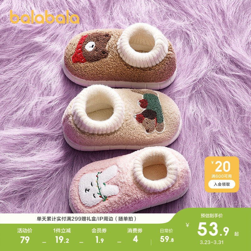 巴拉巴拉童鞋儿童拖鞋男女童年新款冬外穿室内加绒家居包跟鞋