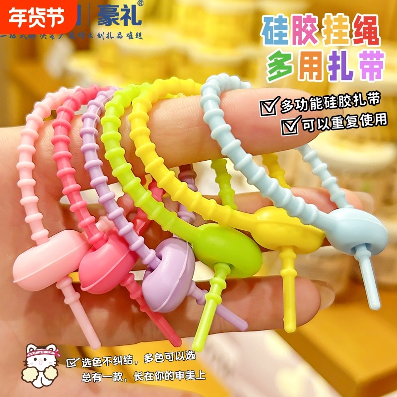 多功能彩色绳环diy收纳神器防丢硅胶扎带小号简约配件钥匙扣挂件