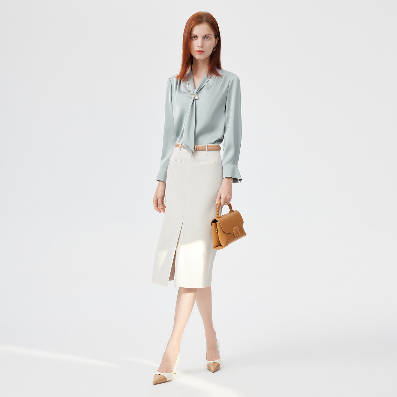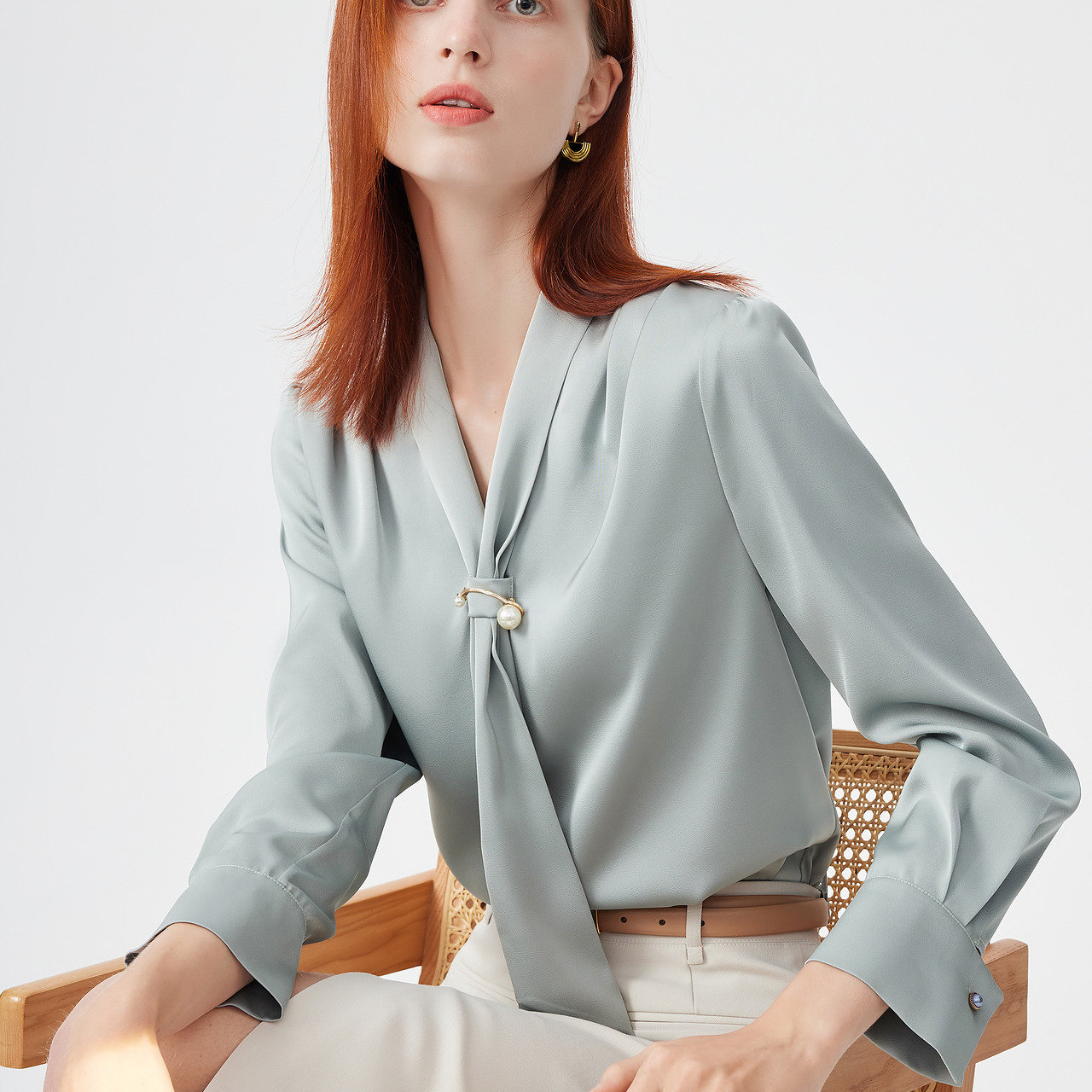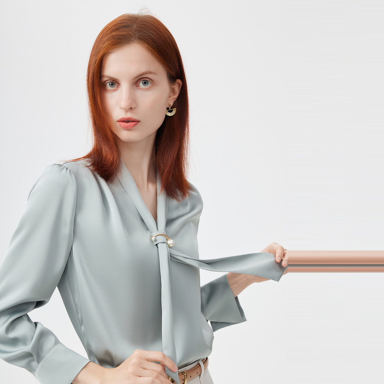 飘带领纯色衬衫*优质简约时尚通勤