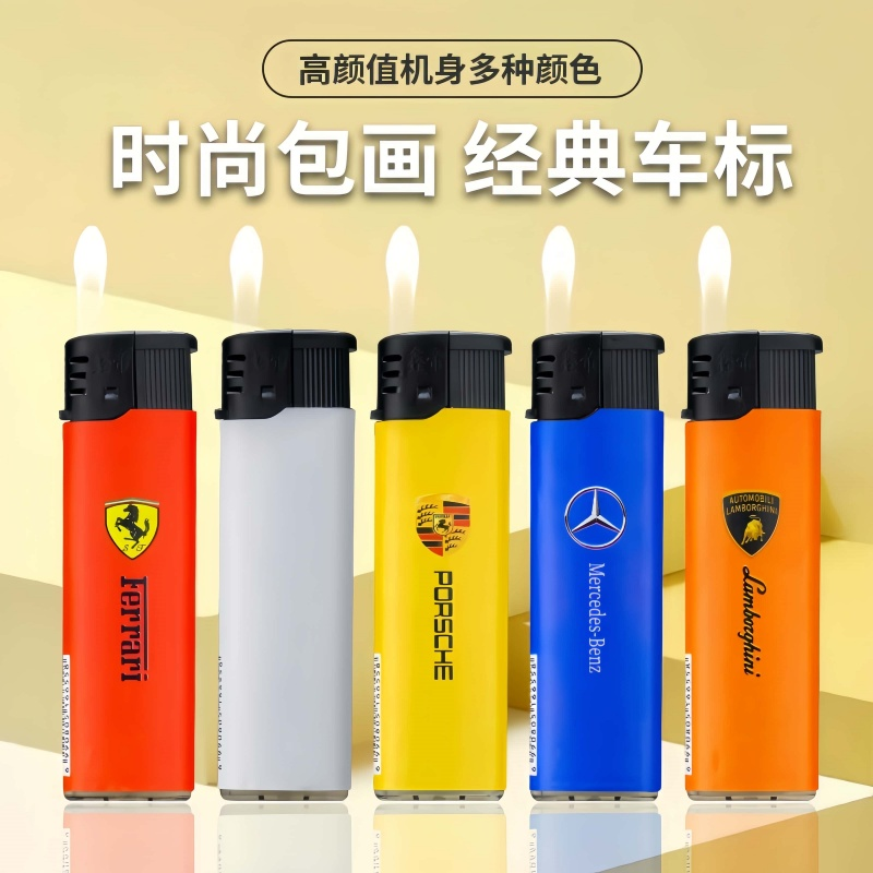 时尚创意耐用包画车标明火家用打火机超市便利店批发一次性火机