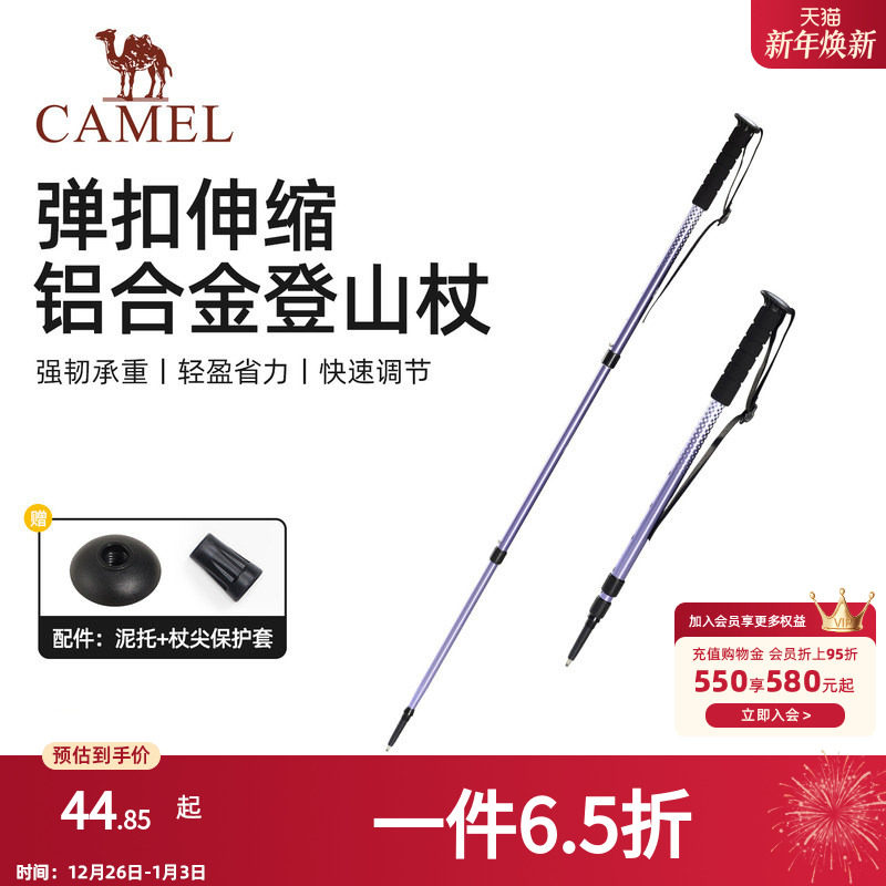 骆驼铝合金登山杖专业户外手杖碳素伸缩棍爬山拐杖徒步装备男女款