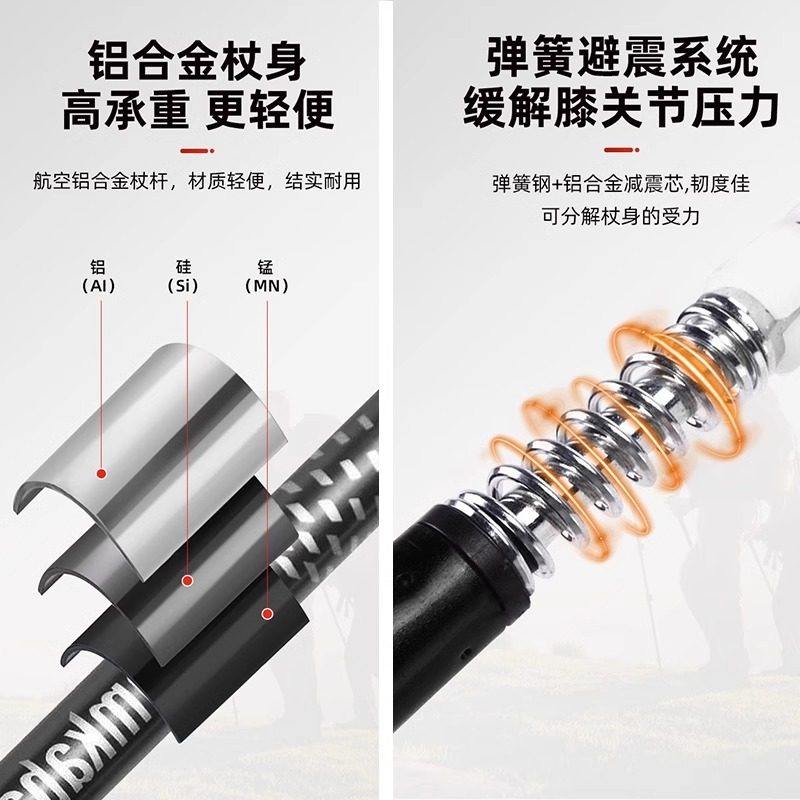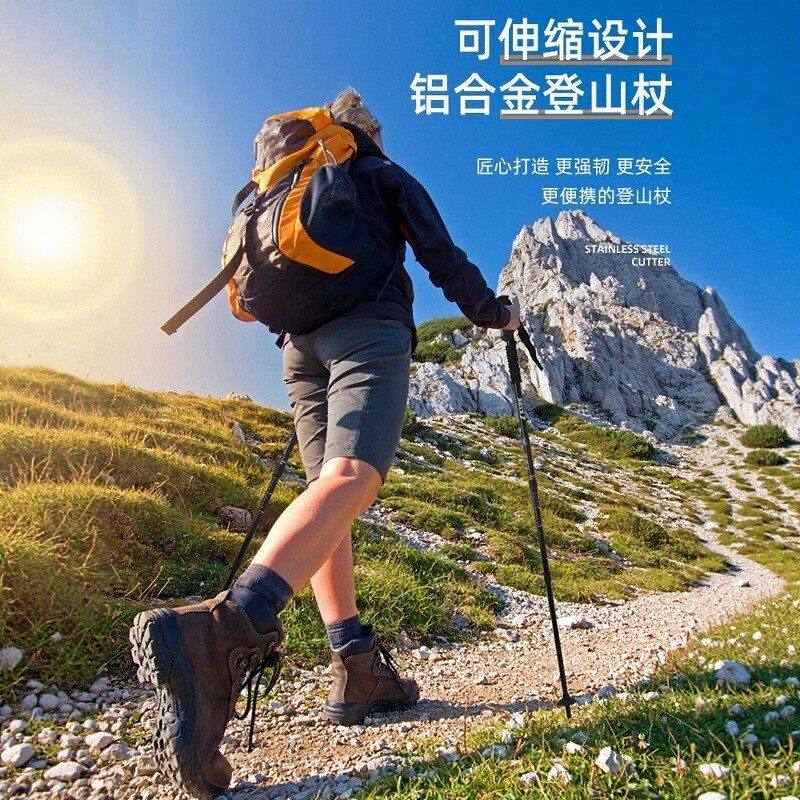 登山杖户外超轻伸缩杖男女爬山徒步装备防滑多功能老人拐杖