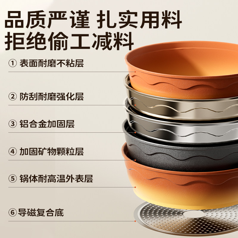 钛红芯控温平底锅不粘锅家用无涂层炒菜煎蛋牛排电磁炉专用深煎锅