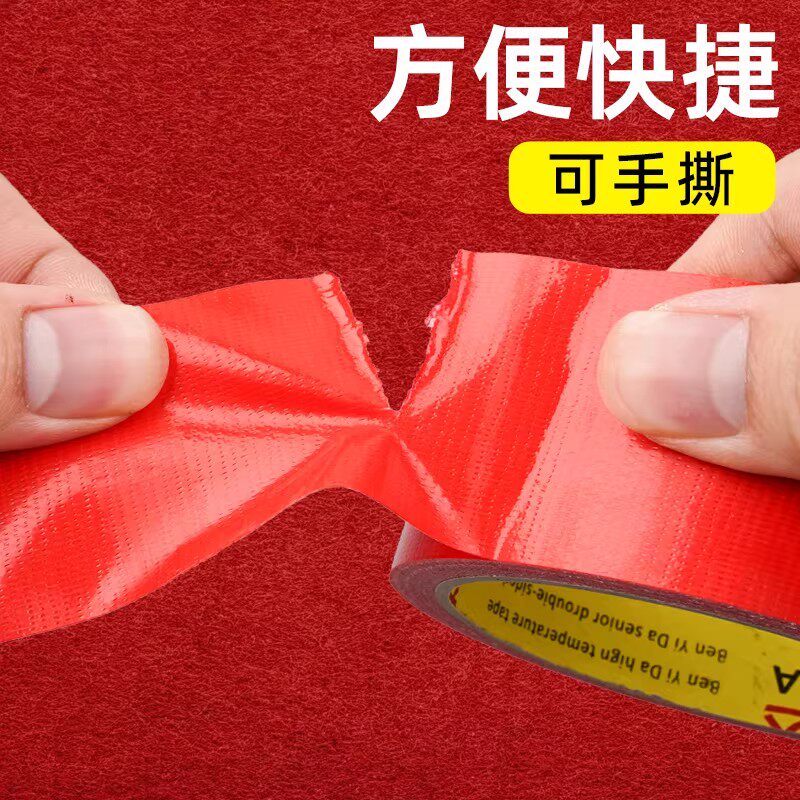 红色单面布基胶带强力加厚耐磨粘地毯胶无痕防水婚庆布置地膜固定