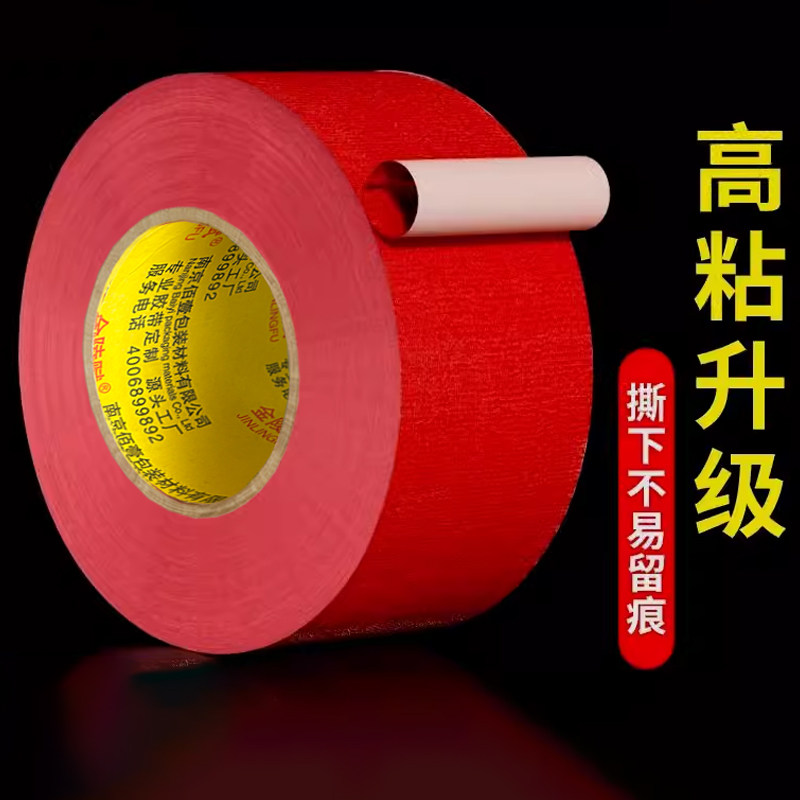单面布基胶带红色强力胶50米高粘贴地毯地面警示地板保护膜加厚宽高粘度防水胶布固定地膜胶修补封箱耐磨粘性