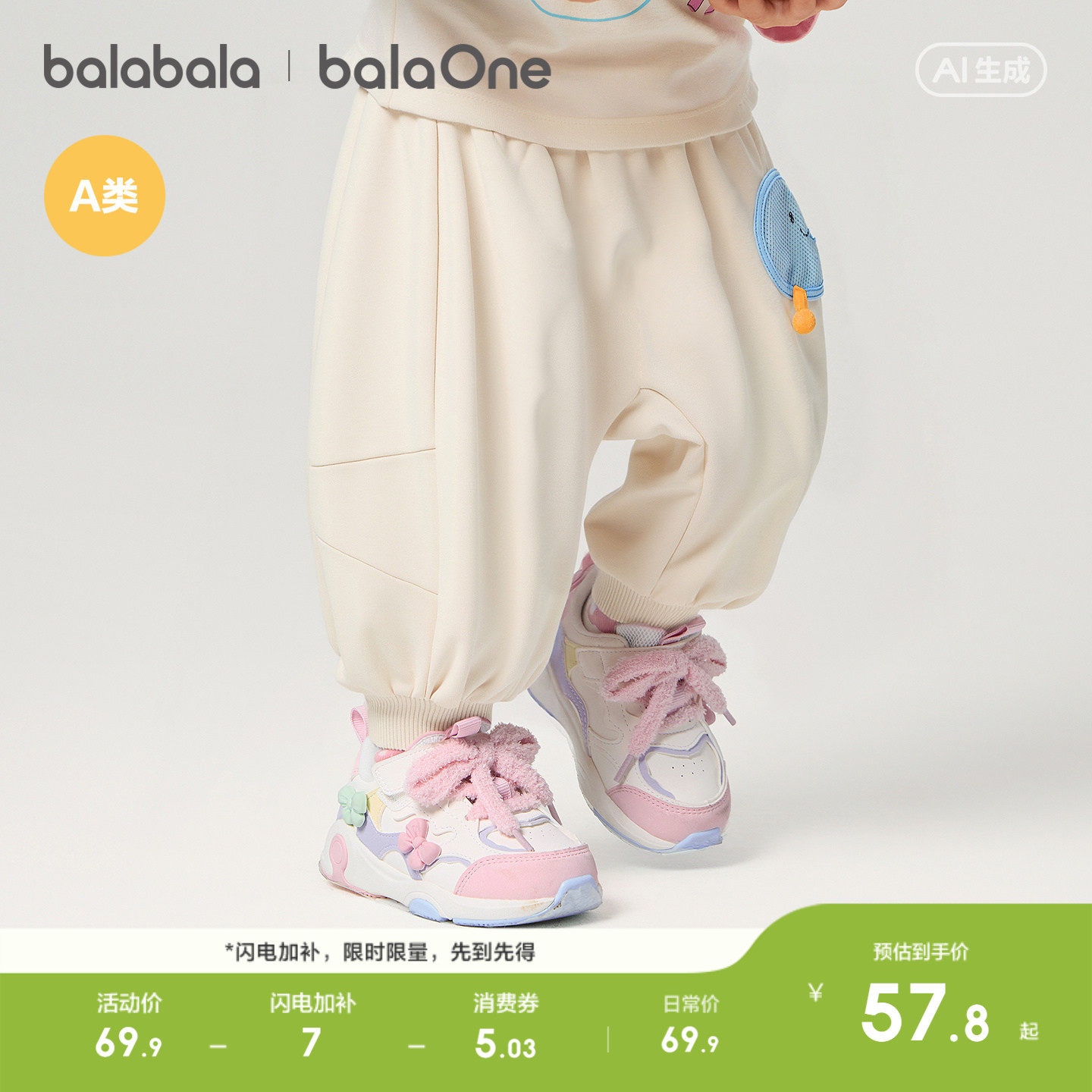 巴拉巴拉宝宝裤子婴儿裤子男女童长裤2026新款春装运动裤屁屁裤潮