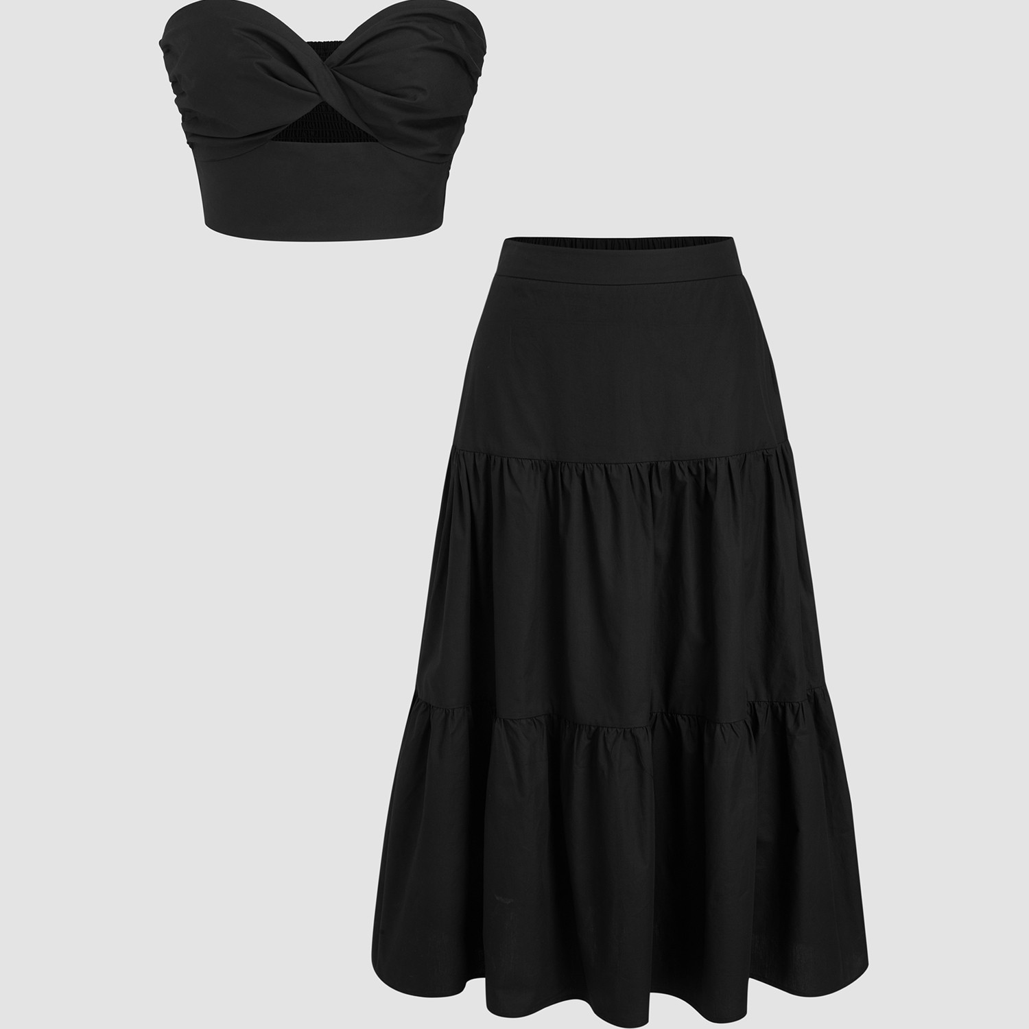 CIDER 棉质扭结短款抹胸上衣多层长半身裙套装114617637